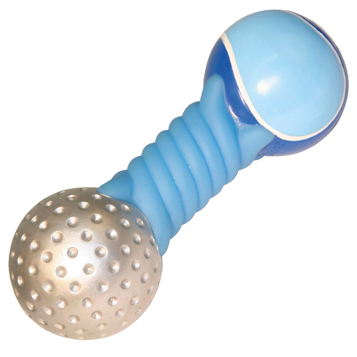 Das quietschende Hundespielzeug ausVinyl garantiert viele lustige Spielestunden. Die Hantel Sports in blau ist optimal für den Golfspieler oder Tennisfan. Mit einer Länge von 19 cm ist das Hundespielzeug definitiv ein Hingucker gegenüber den typischen Formen, wie Bällen, Ringe oder Knochen.