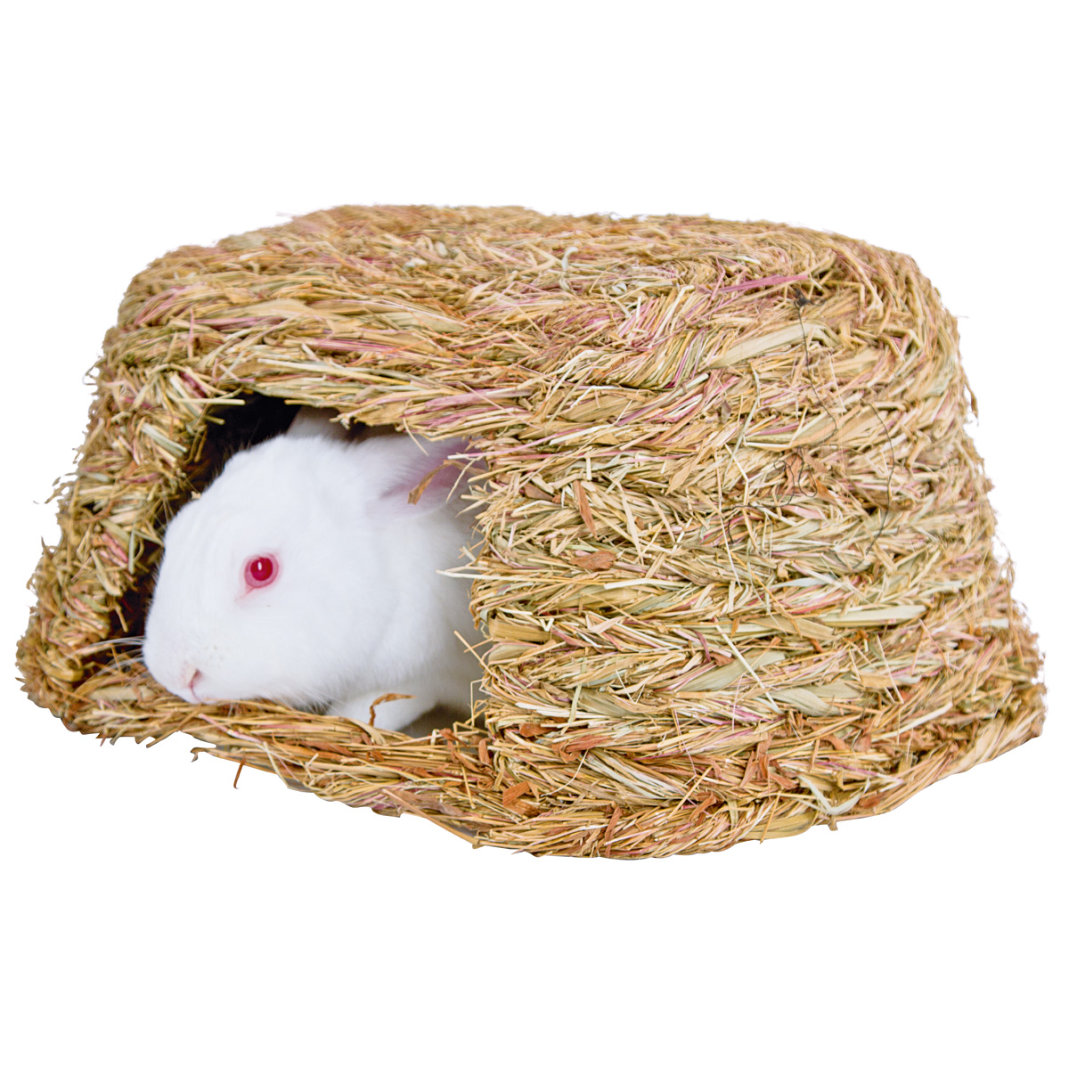 Das Nagerhaus besteht aus natürlich getrocknetem Gras. Es ist somit unbedenklich für den Verzehr geeignet, auch weil es frei von gefährlichen Draht- oder Kunststoffteilen ist.