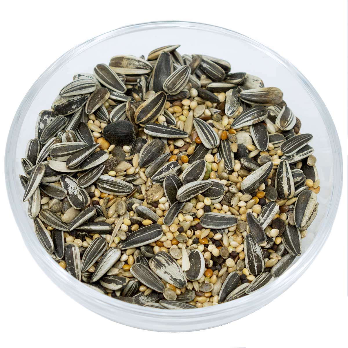 Compoziție: 35 % floarea-soarelui vărgată, 33 % mei galben, 10 % semințe lucioase, 7 % cânepă, 5 % mei roșu, 5 % nap negru, 2 % semințe de in, 2 % hrișcă, 1 % boabe de milo.