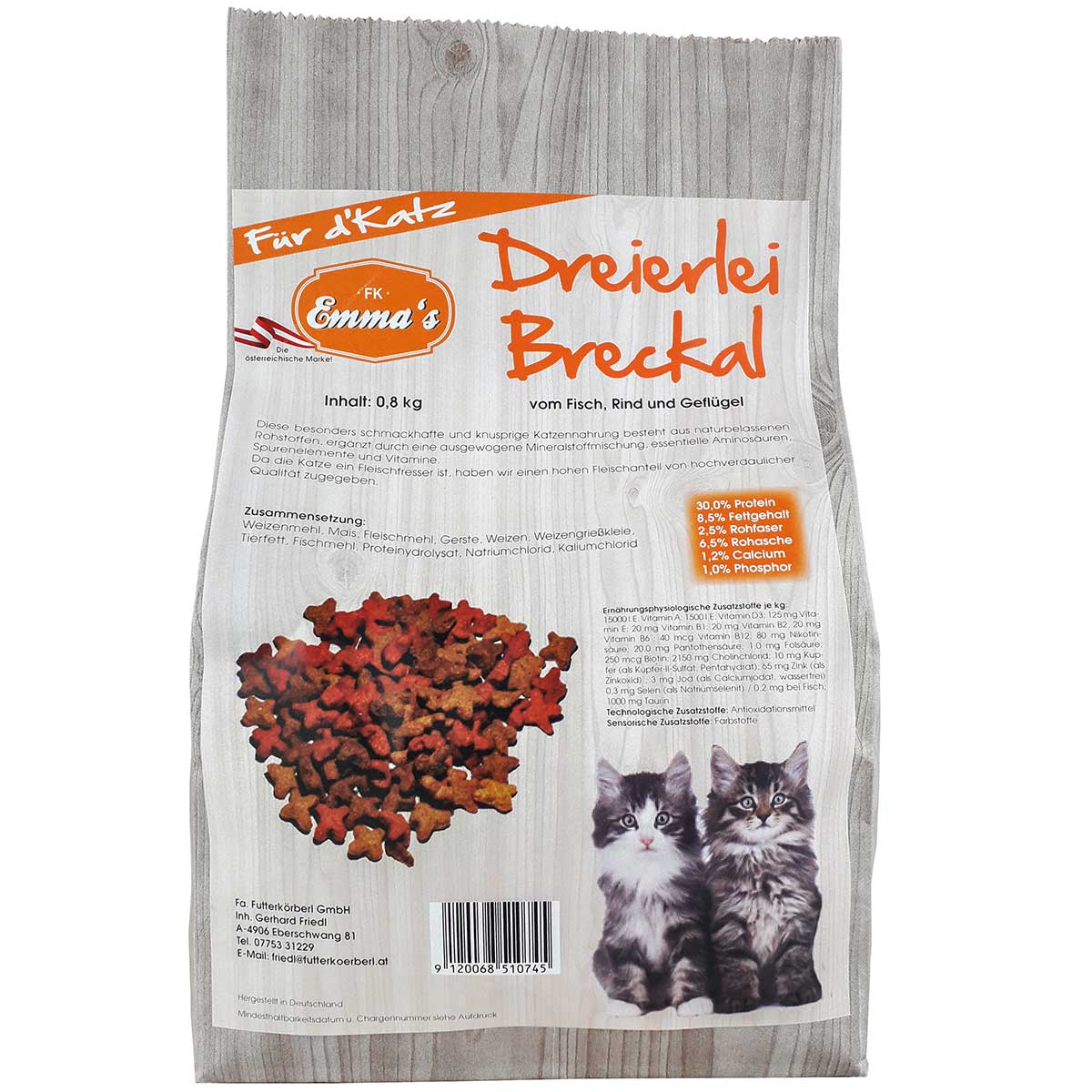 Emmas hrană pentru pisici Breckal din pește, carne de vită și pasăre 0,8 kg
