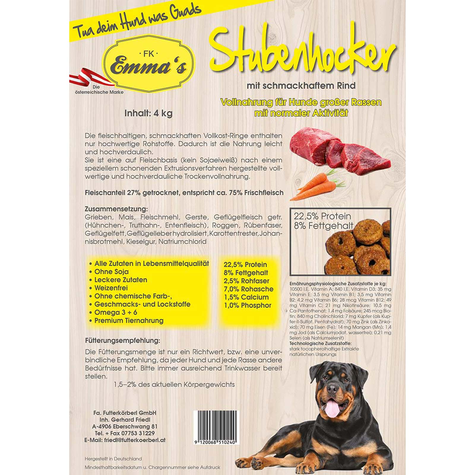 - Hrană dovedită pentru câini „Made in Austria”, fără aditivi