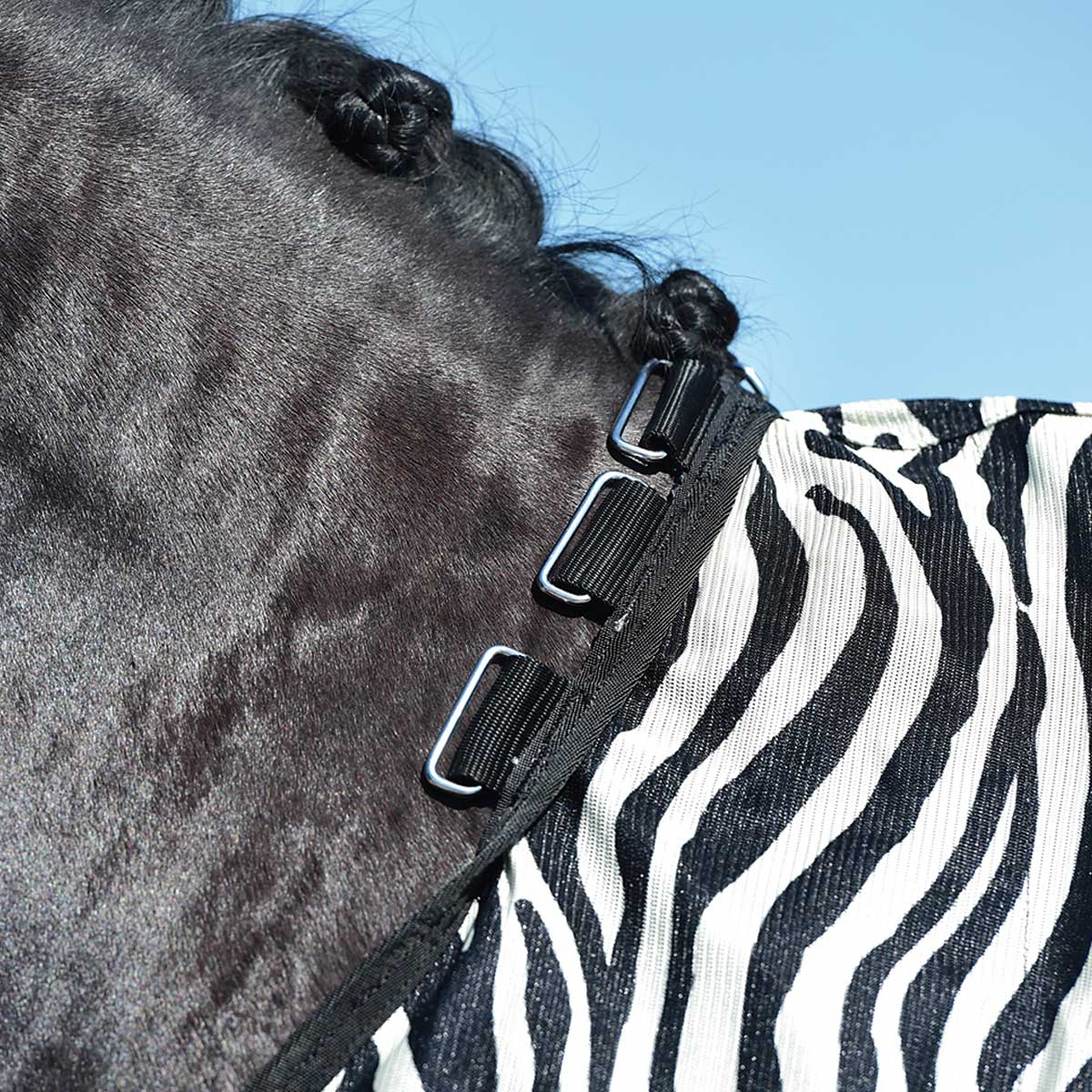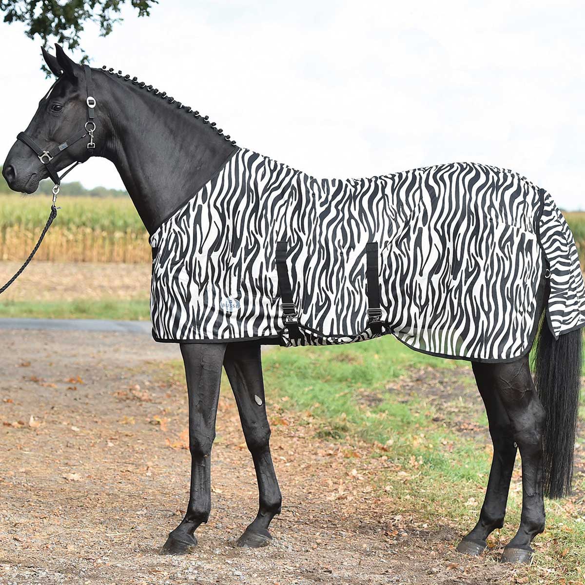 1x BUSSE Paddock pătură anti muște ZEBRA, cu bavetă pe burtă.