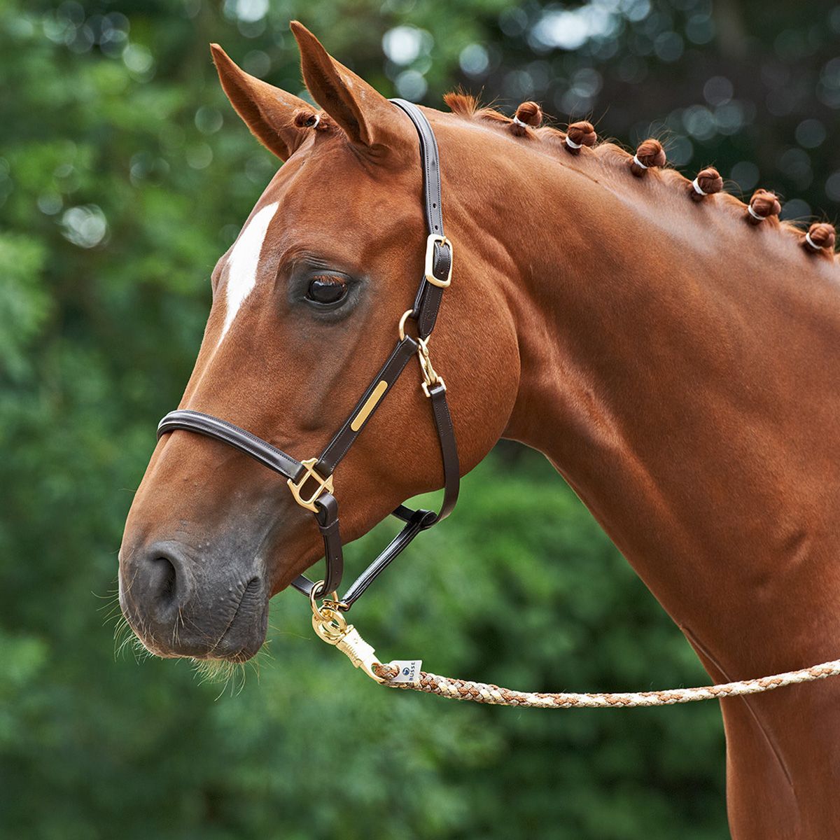 Halter nobil realizat din cea mai bună piele de frâu - placă metalică pentru gravuri individuale, poate fi desfăcută și fixată cu șuruburi.