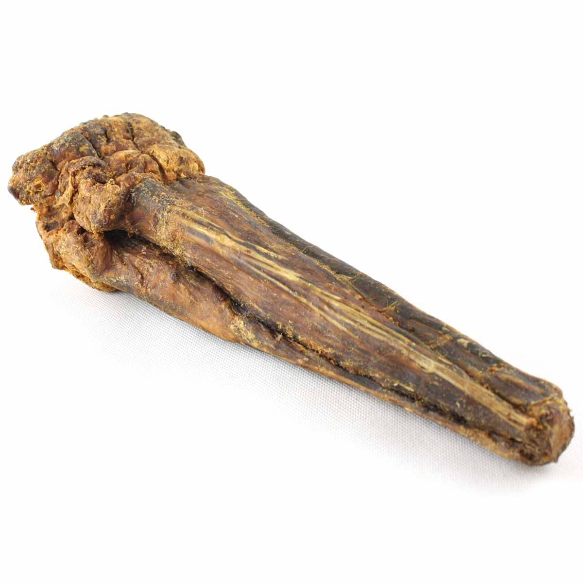 Acest produs de mestecat gustos este fabricat din 100% cal, fără aditivi, și este pur și simplu irezistibil pentru câini datorită gustului său puternic și consistent. În special pentru câinii cu alergii și intoleranțe, este adesea dificil să găsești o mestecare potrivită care să îi țină ocupați mai mult timp. Osul de cal este mult mai dur decât alte oase de mestecat și garantează o plăcere de mestecat îndelungată. Datorită conținutului ridicat de carne, acest produs este bine tolerat și mai ușor de digerat decât produsele de mestecat din carne de vită. Pe lângă plăcerea de a mesteca, curăță în mod natural dinții, întărește mușchii de mestecat, iar tartrul este îndepărtat eficient prin mestecat. Produsul natural este uscat ușor la aer, fără adaos de conservanți, coloranți sau arome.