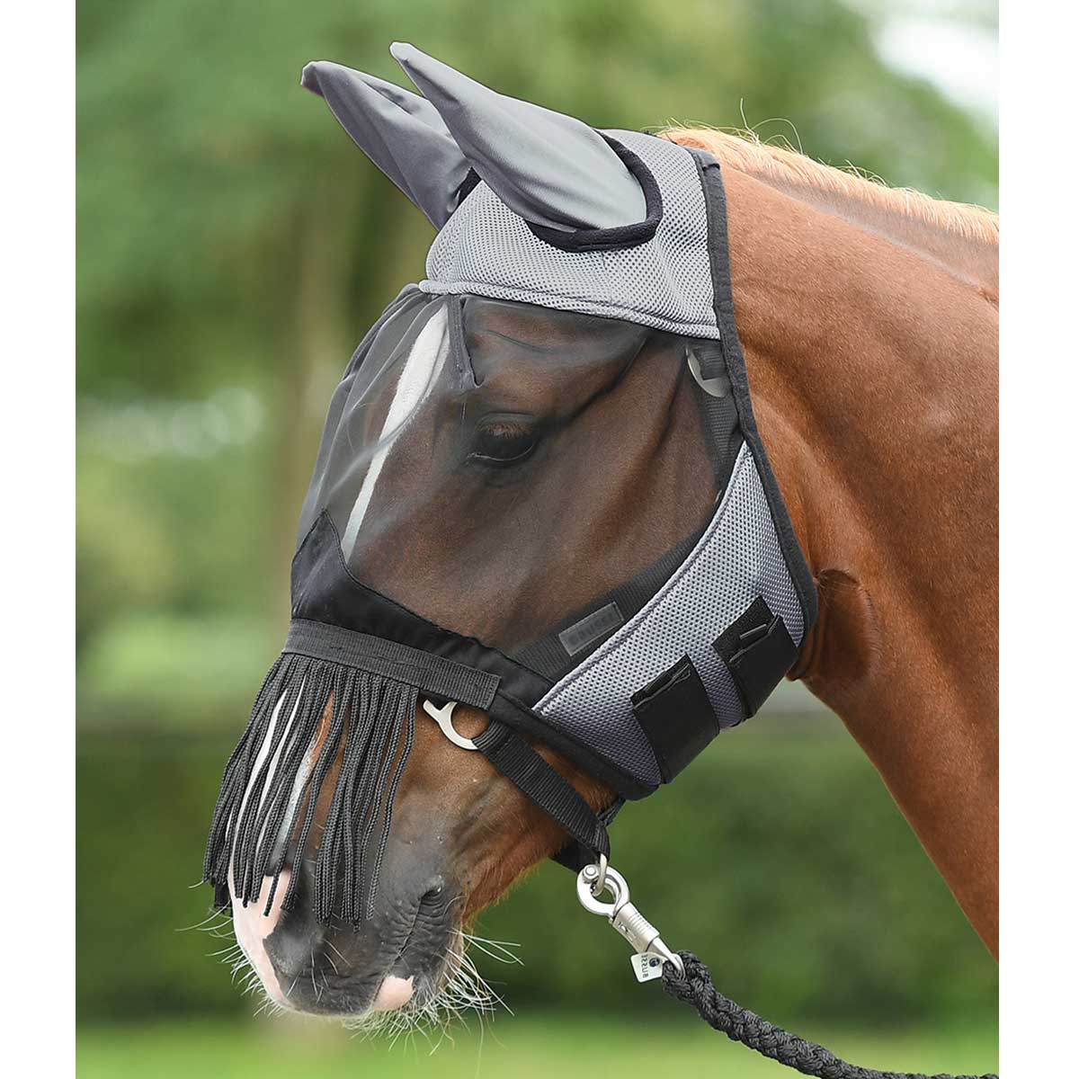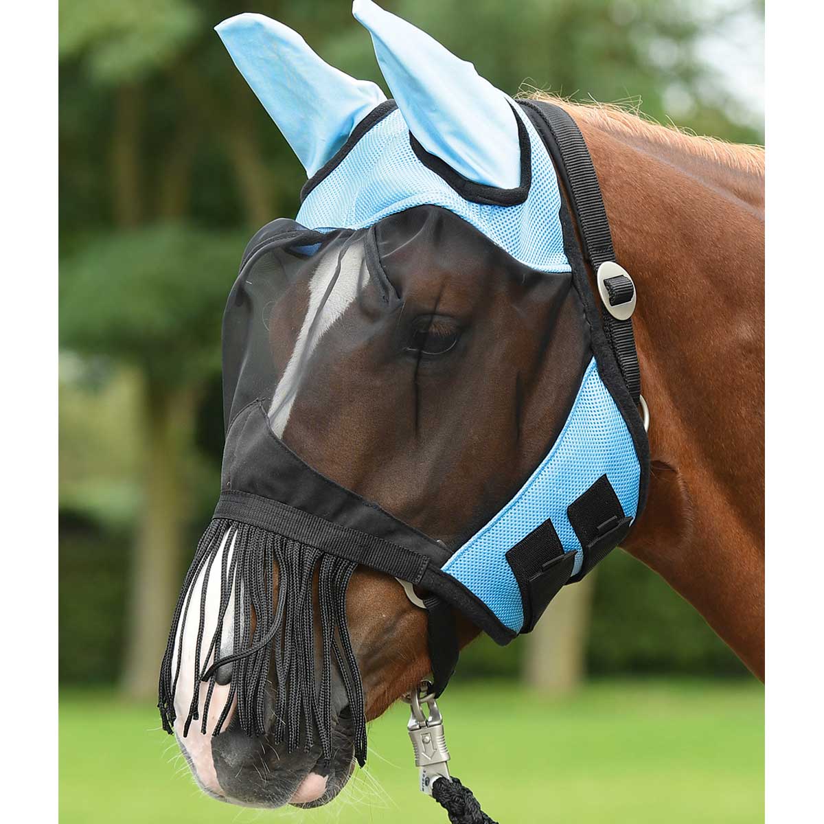 Mască împotriva muștelor cu franjuri fixe în zona nărilor.