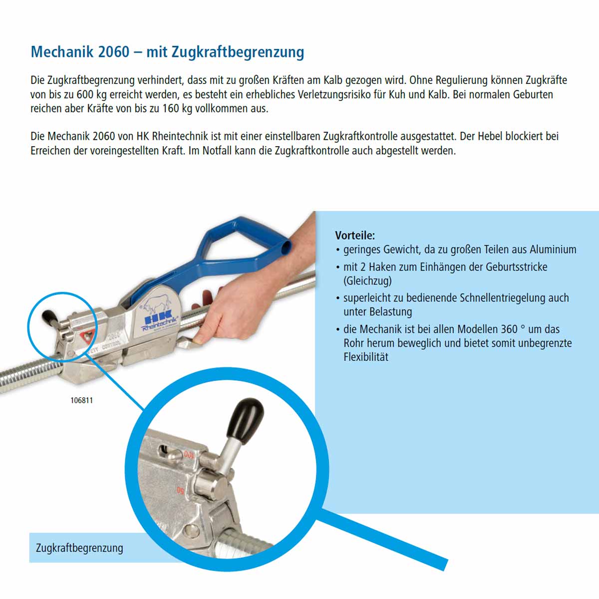 Caracteristica specială a mecanismului 2060 este reprezentată de limitarea tracțiunii. Acest lucru previne ca vițelul să fie tras cu prea multă forță. O pârghie se blochează atunci când este atinsă forța prestabilită. Cu toate acestea, în caz de urgență, controlul reglabil al tracțiunii poate fi oprit rapid și ușor.