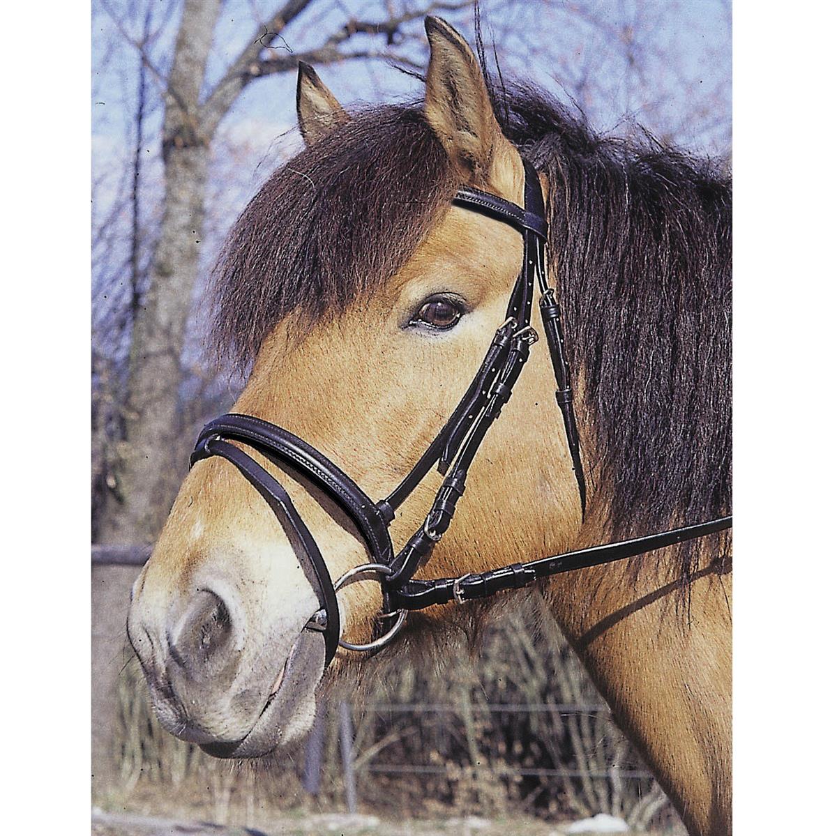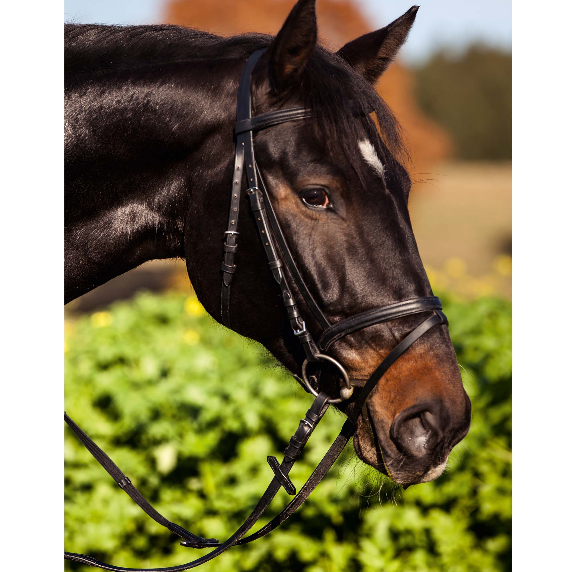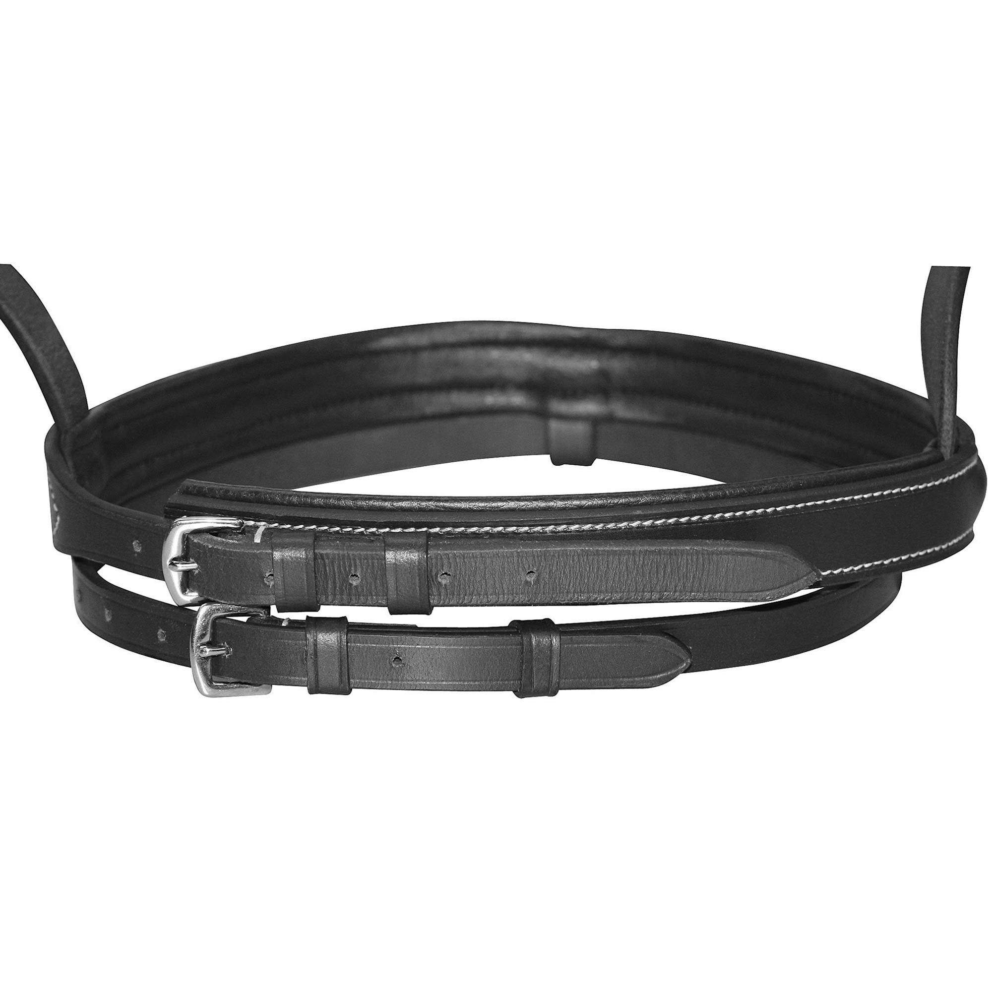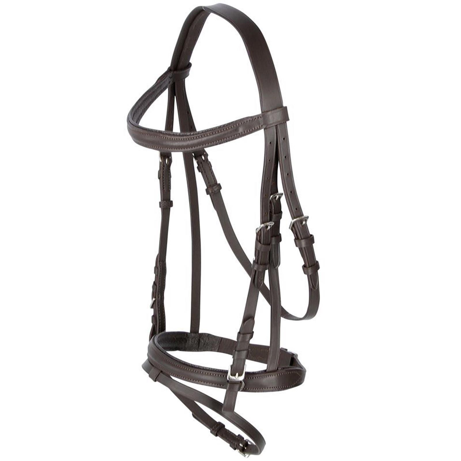Veți primi o bentiță combinată englezească cu curea de închidere de calitate standard bună. Frâul este cusut manual și este reglabil.