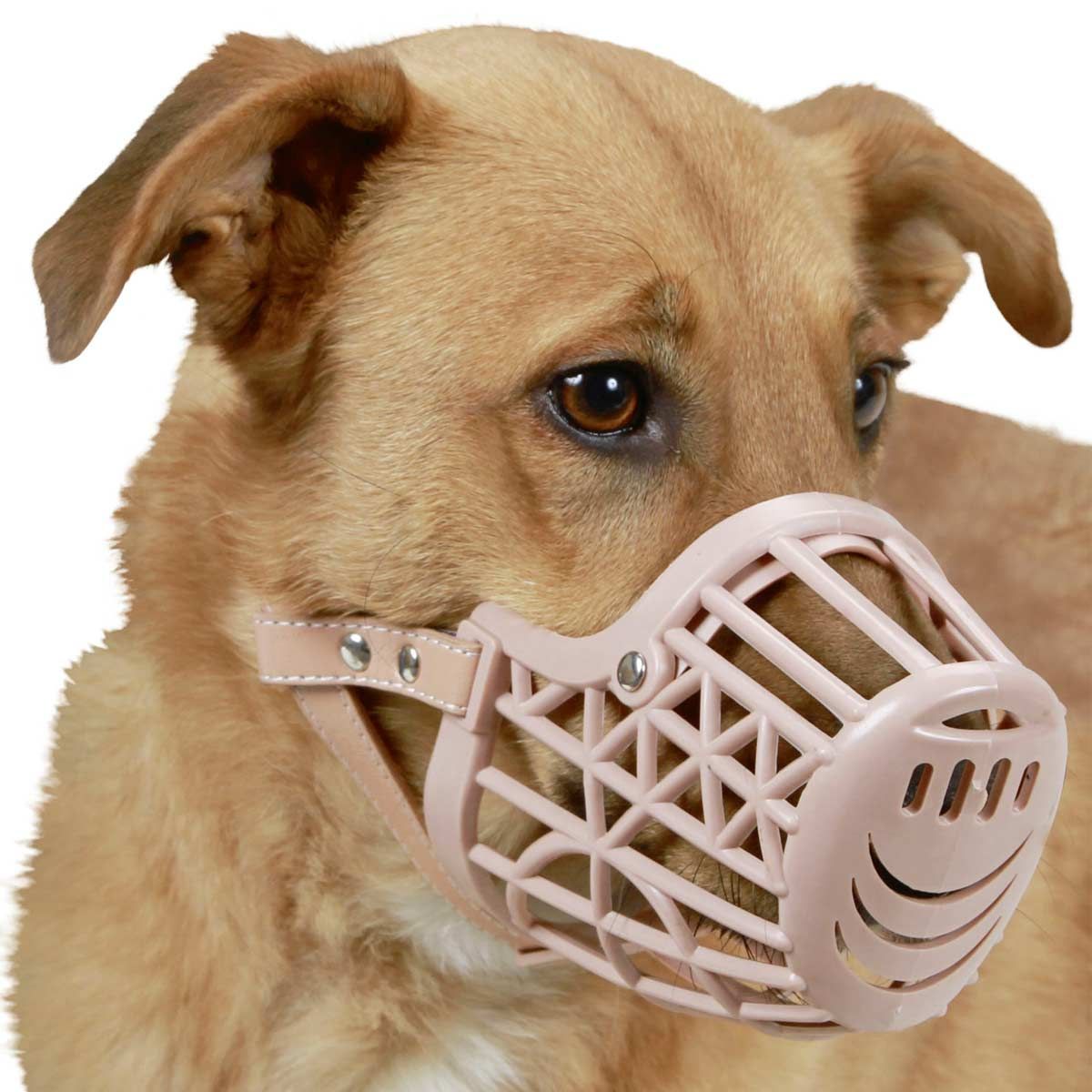 The dog muzzle made of brown plastic is riveted and with leather straps for a comfortable fit. The muzzle is available in different sizes:Size: (muzzle circumference/basket depth)