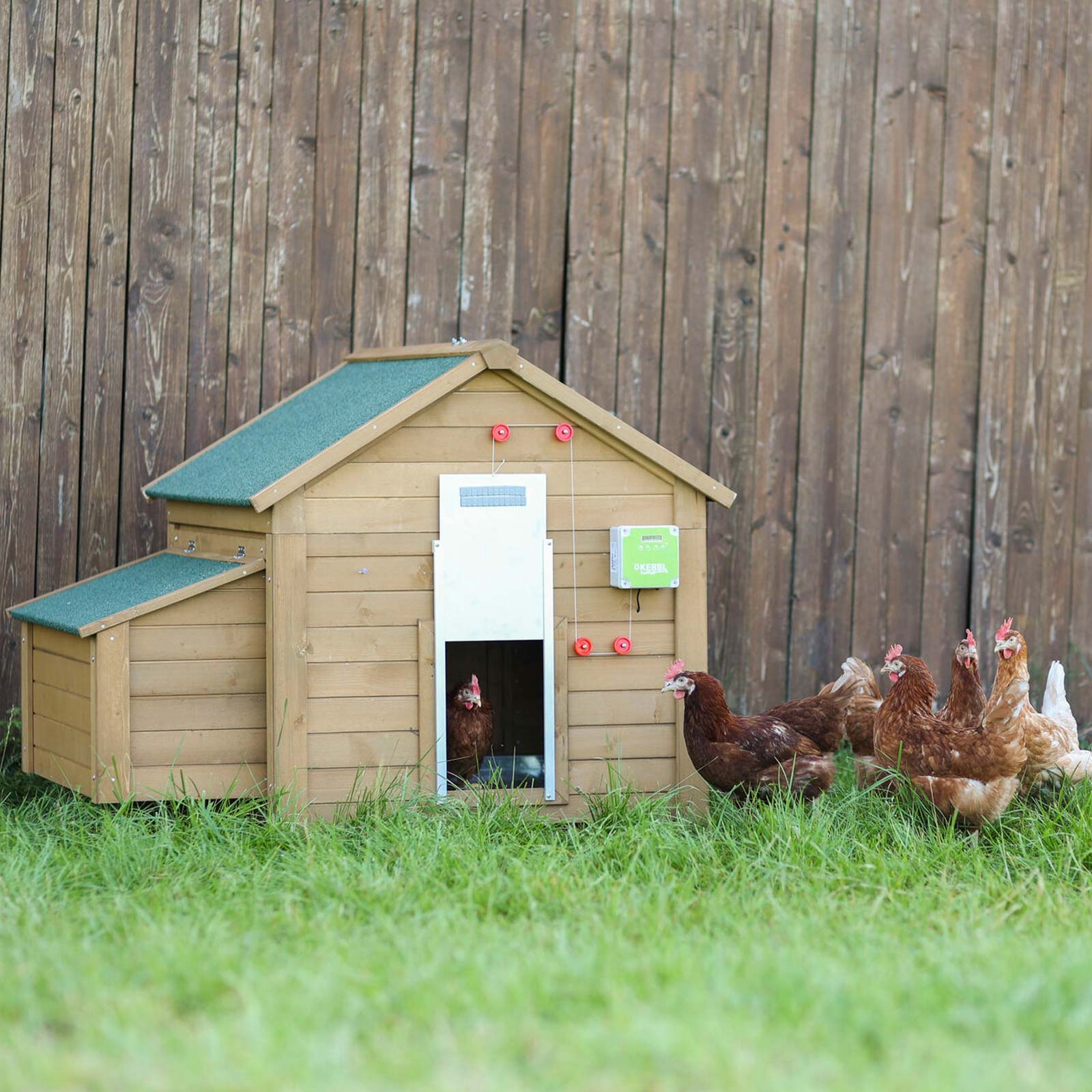 - Senzor de lumină - clapeta pentru păsări este controlată cu ajutorul unui senzor de lumină în funcție de lumina zilei.