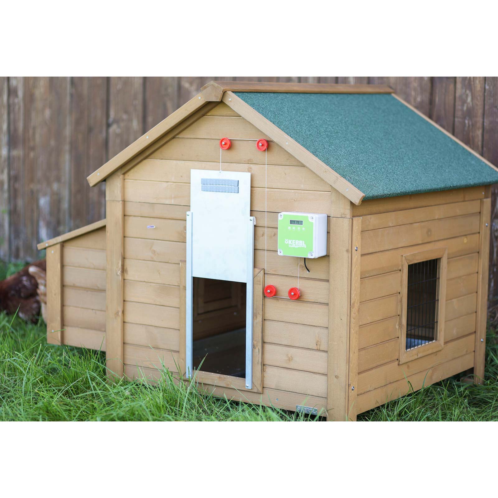 Cu ușa automată pentru cotețul păsărilor de la Kerbl, clapele, ușile sau glisierele de la adăposturile de păsări pot fi deschise și închise automat. Ușa automată pentru păsări are mai multe funcții pentru deschiderea/închiderea clapetei: