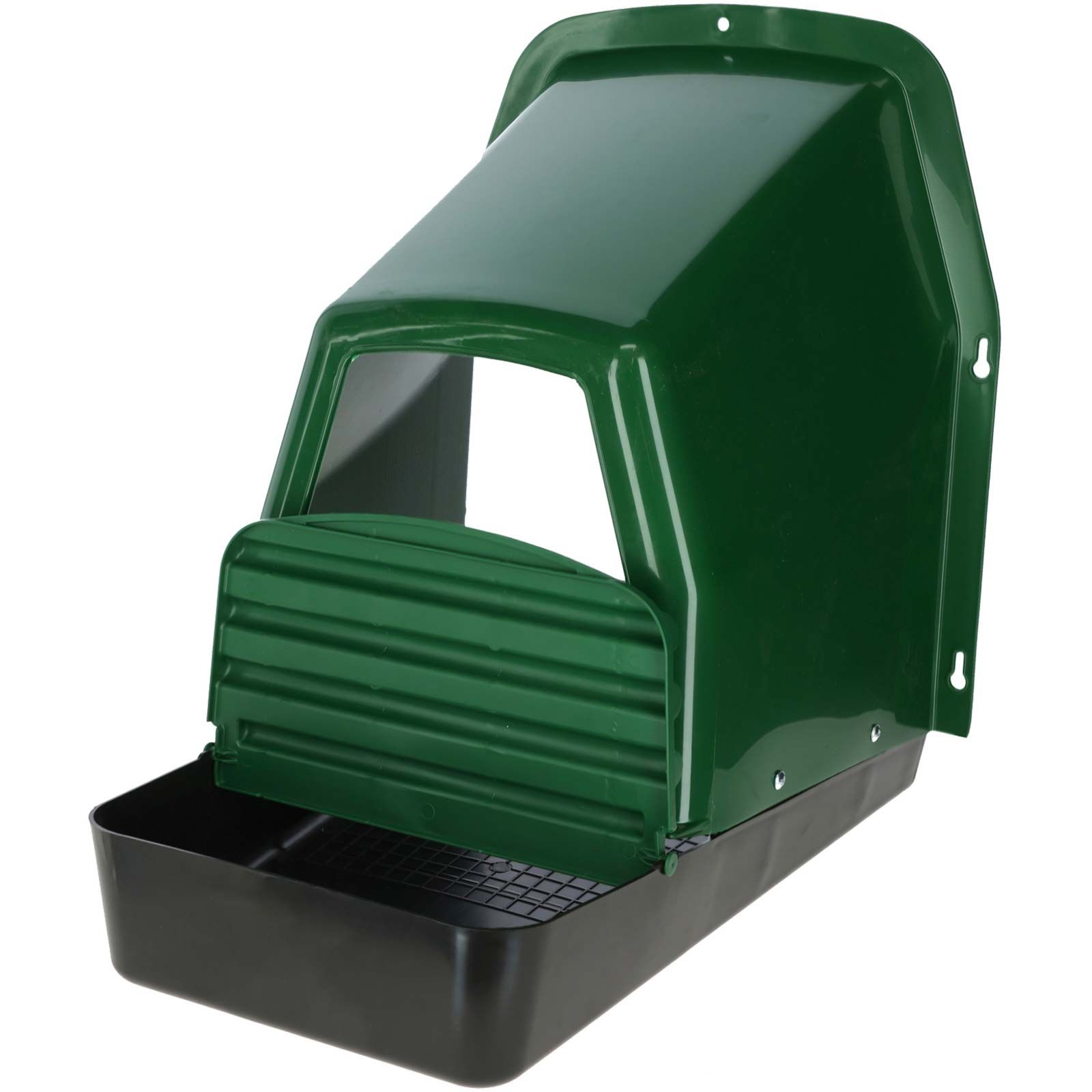 Partea din spate a cuibului de găini ouătoare este deschisă, deoarece cuibul este atașat de un perete. Cele 4 orificii de montare preperforate de pe marginea exterioară permit ca Kerbl cuibul de ouat să fie fixat rapid și sigur pe orice perete.