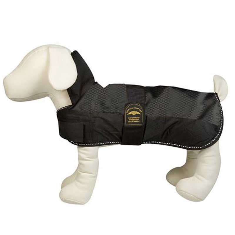 Jetzt sind endlich auch im Winter lange Spaziergänge mit dem Hund möglich, dank des vor Kälte, Wind und Nässe schützenden Hundemantels EISBÄR, mit spezieller Teflon Beschichtung. Dieser Mantel schützt perfekt vor Kälte und der oft nasskalten Witterung. Das atmungsaktive Gewebe wirkt außerdem schmutzabweisend, hält Wasser ab und ist Wind undurchlässig. Der Hundemantel Eisbär bietet einen optimalen Tragekomfort, da der Hundemantel durch Klettverschlüsse im Brust- und ab Größe 50 zusätzlich im Bauchbereich stufenlos verstellbar ist Die Passform wird optimiert durch die extra Beinschlaufen, diese verhindern ein verrutschen. Am Kragen befindet sich eine Aussparung für die Hundeleine.