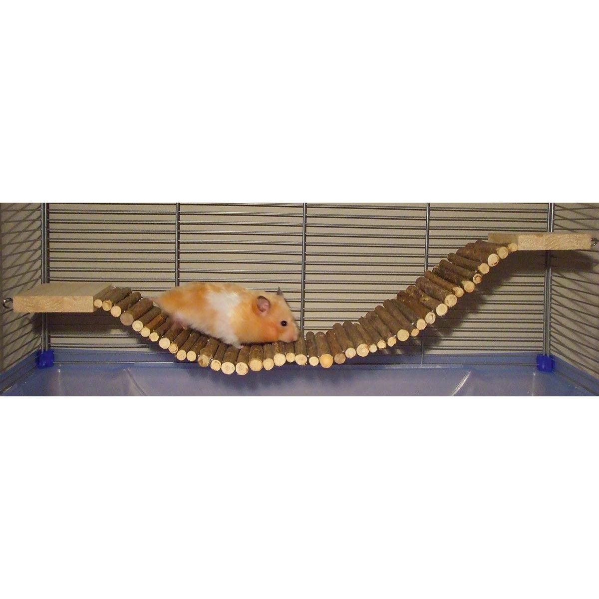 Podul suspendat flexibil Kerbl Pet Pod Natură, realizat din lemn natural, se poate fixa în două puncte ale cuștii. Permite animalului dumneavoastră de companie să urce între diferite niveluri. Datorită distanței mici dintre trepte, hamsterul dumneavoastră se poate urca și coborî fără probleme.