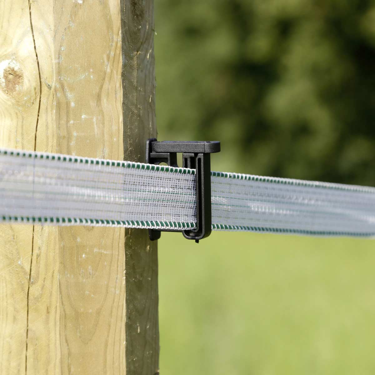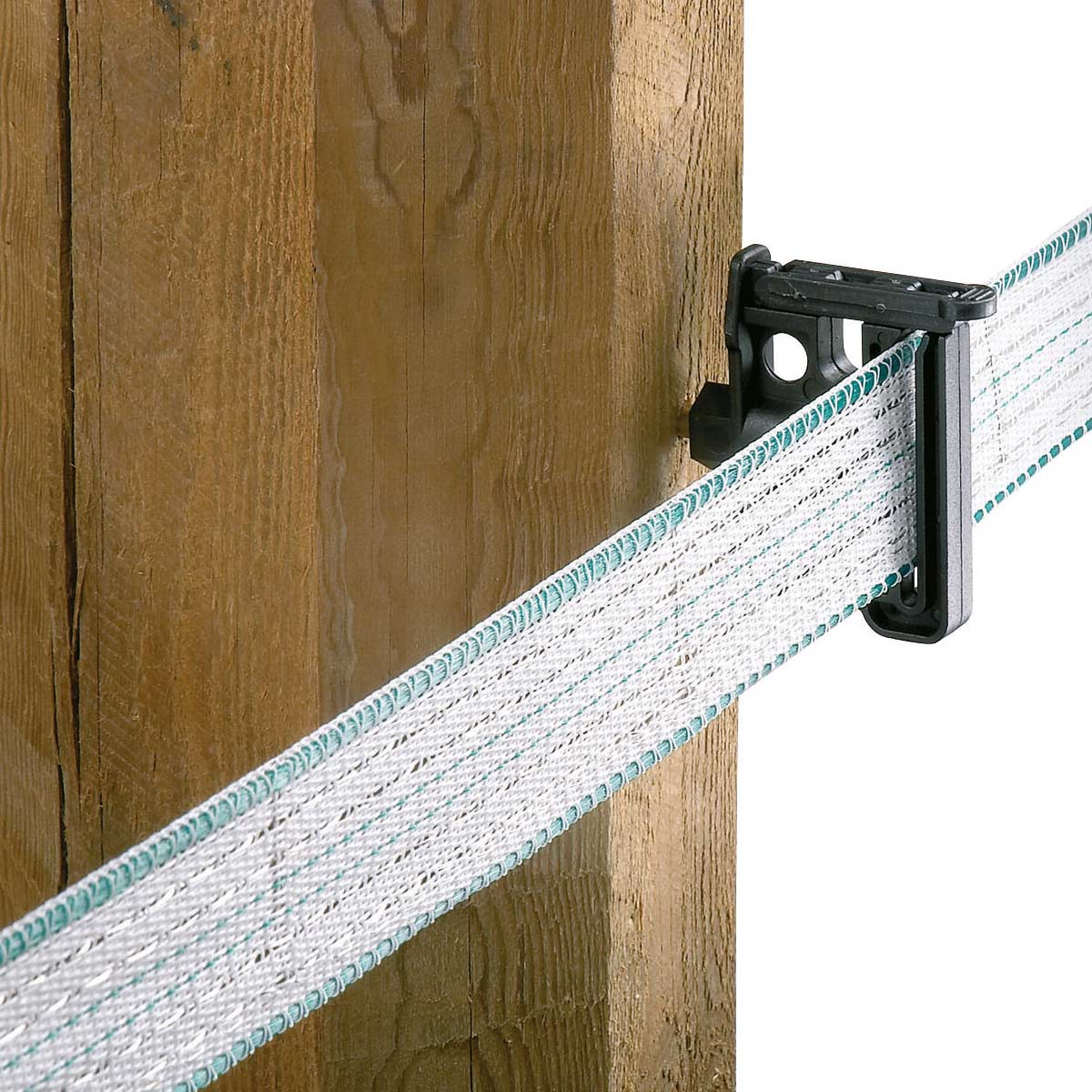 Izolatorul de clipuri AKO Maxi Tape cu mecanism de prindere îmbunătățit datorită celor 2 puncte de fixare este ideal pentru gardurile de pășune cu benzi de până la 40 mm lățime și cabluri electrice de până la 6 mm.