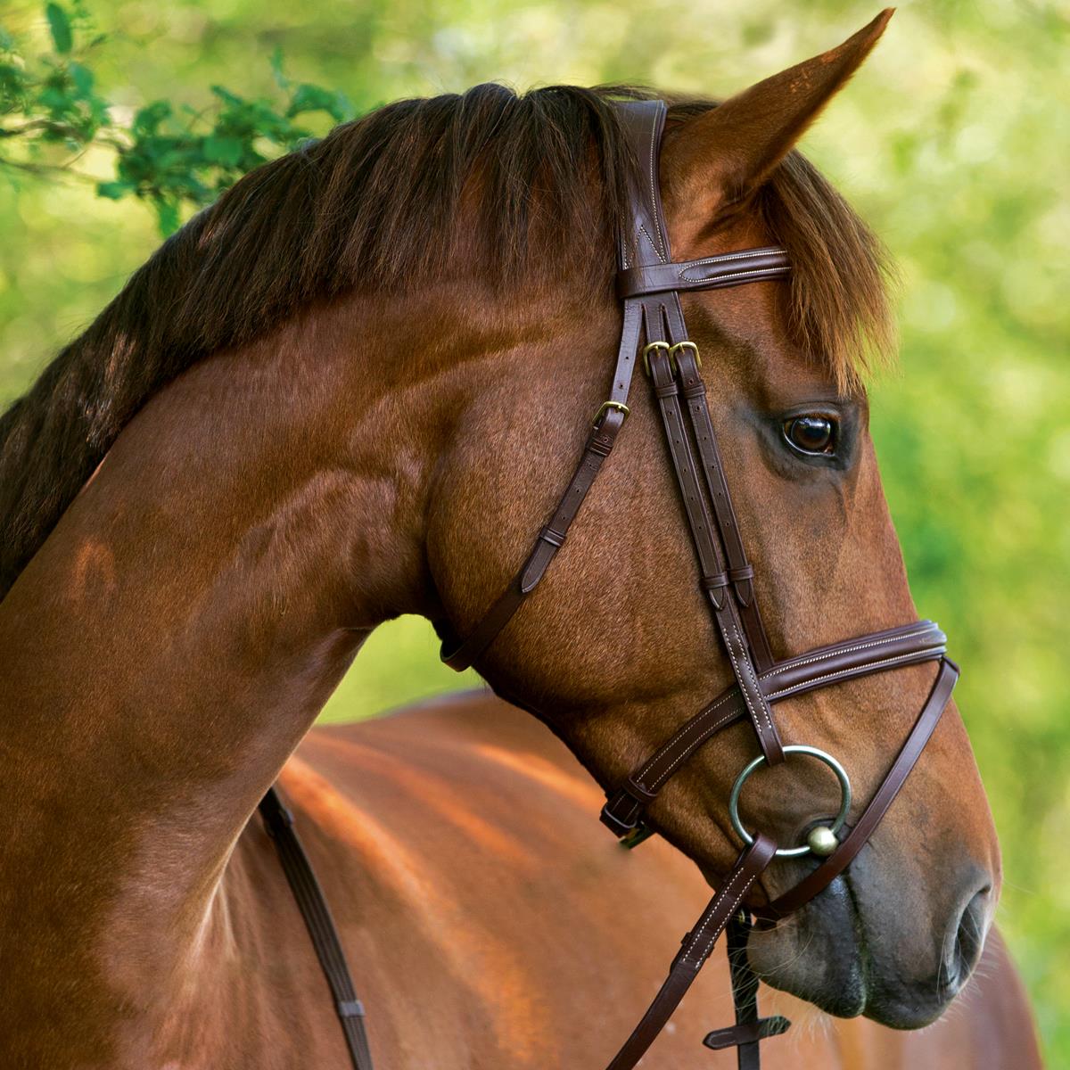 Această frumoasă frâu de șaorma maro în stil clasic este confecționată din piele de înaltă calitate.