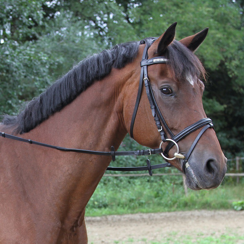 Veți primi o frânghie de frâu robustă din pânză cu capete din piele și un opritor de martingale.
