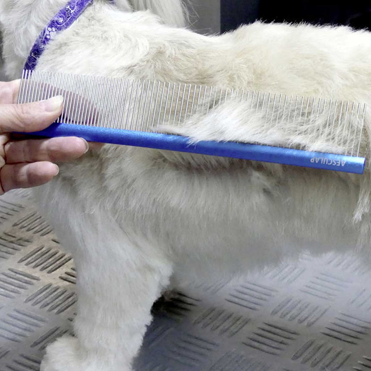 Pieptenele pentru blană este perfect pentru a peria și a desface încurcăturile ușoare și nodurile din blană, precum și pentru pregătirea pentru și după tunsoare. Acest pieptene Aesculap din oțel inoxidabil este potrivit pentru câini și pisici de toate mărimile și lungimile de blană. Placarea cromată și dinții rotunjiți fac ca acest pieptene să fie deosebit de delicat cu blana.