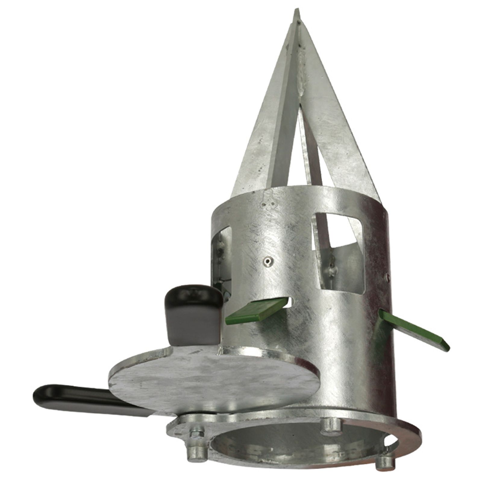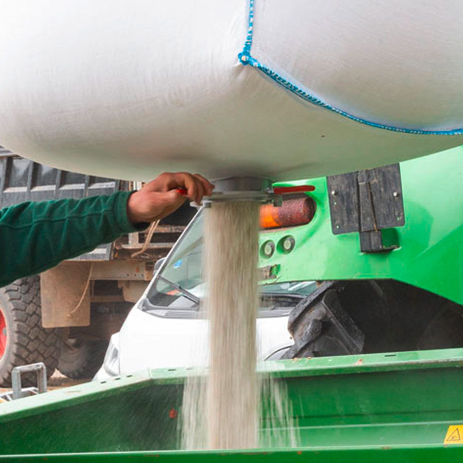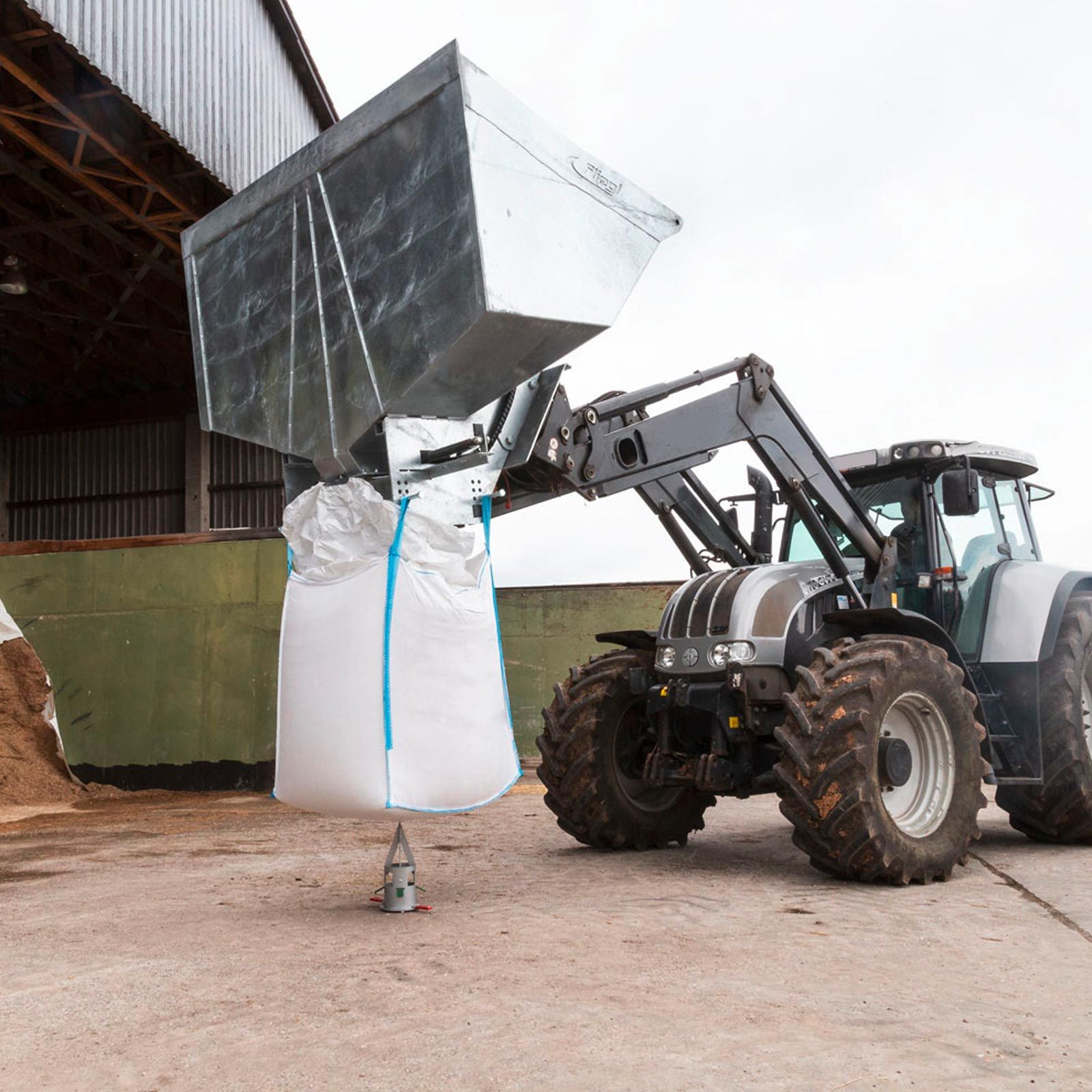 Acest sistem de descărcare face ca golirea BigBags să fie mult mai ușoară. Un glisor integrat, resigilabil, permite o golire simplă și controlată. Dispozitivul de dozare poate fi montat pe saci deja umpluți cu un simplu mâner, trebuie doar să plasați BigBag-ul pe dispozitivul de ajutor la descărcare. Vârful cu pană întărită se înfige în țesătură. Barele integrate fixează gura de scurgere și o împiedică să cadă atunci când BigBag-ul este ridicat. Ajutorul pentru gura de scurgere, fabricat din metal extrem de robust, este potrivit pentru toate tipurile de materiale cu curgere liberă, cum ar fi furajele, îngrășămintele, semințele, peleții, sarea, pietrișul și granulele.