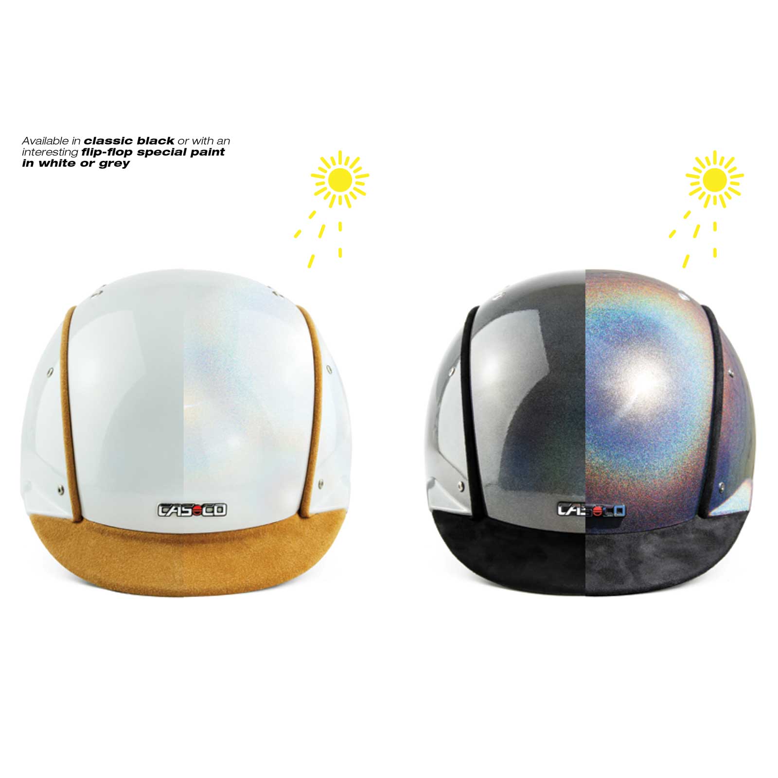 Noua cască de echitație Apart de la Casco oferă tot ce ți-ai putea dori ca rider. Designul convinge prin eleganța sa în trei culori - negru, flip flop/gri și flip flop/alb. Datorită culorilor neobișnuite ale Flip Flop, vei fura garantat spectacolul. Casca de echitație Casco Apart, spre deosebire de majoritatea căștilor de echitație Casco, este din nou echipată cu funcția "Ergonomic Size". Casca se adaptează singură la dimensiunea și forma capului dumneavoastră datorită benzii de cap extensibile - rotirea enervantă a roții este acum istorie. Căptușeala interioară a căștii este lavabilă.