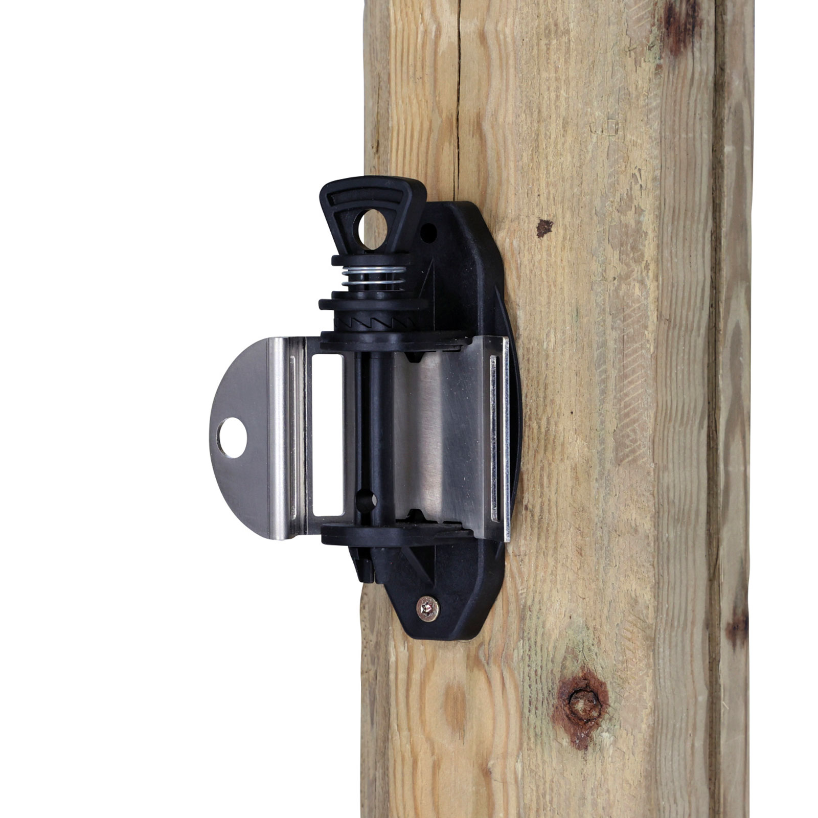 Izolatorul flexibil Premium Izolator TITAN cu placă de conectare din oțel inoxidabil este potrivit pentru agățarea mânerelor de poartă și tensionarea simultană a materialului conductor. Izolatorul de bandă este ideal ca izolator de început sau de sfârșit pentru porți, deoarece mânerul porții este în contact electric direct. În același timp, banda de gard pentru pășuni cu o lățime de până la 40 mm poate fi ghidată și strânsă manual foarte ușor și în siguranță prin intermediul unei funcții integrate de fixare. Montarea pe stâlpul de lemn este rapidă și ușoară prin înșurubarea acestuia. Materialul robust din poliamidă armată cu fibră de sticlă este, de asemenea, foarte rezistent la intemperii și impresionează prin durabilitatea sa îndelungată.