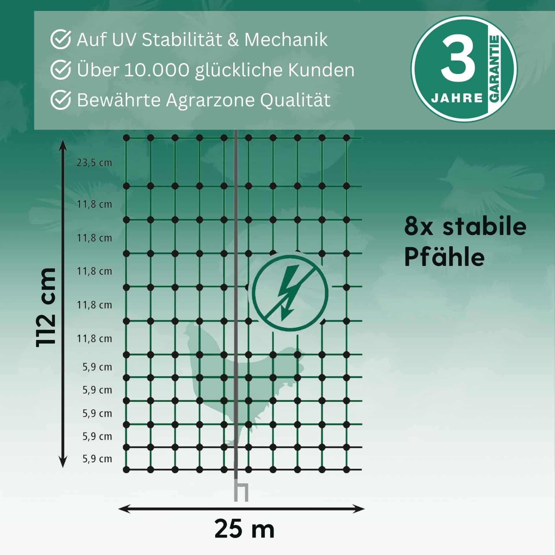Agrarzone Classic plasă de gard pentru păsări fără curent, verde 25 m x 112 cm