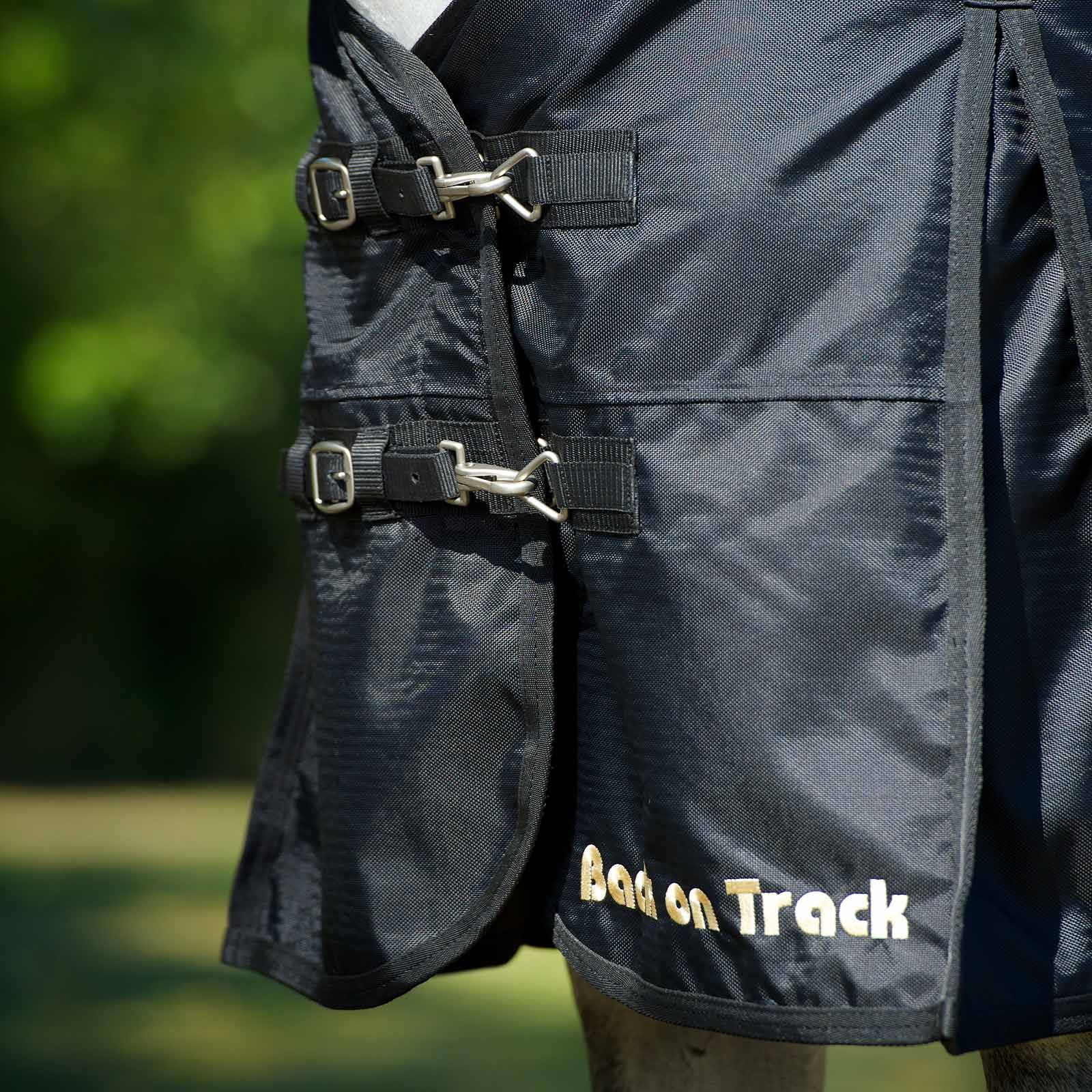 Pătura de ploaie Back on Track 1680D este perfectă pentru utilizare pe vreme rea datorită țesăturii impermeabile, închiderii frontale duble reglabile, pliurilor, curelelor transversale și clapetei de coadă. Interiorul husei de ploaie este echipat cu binecunoscuta țesătură Welltex. Particulele mici de ceramică topită stimulează circulația sângelui. Exteriorul este fabricat din nailon balistic de 1680 denari foarte rezistent. Pătura de ploaie este disponibilă în dimensiuni de 125 - 165 cm.