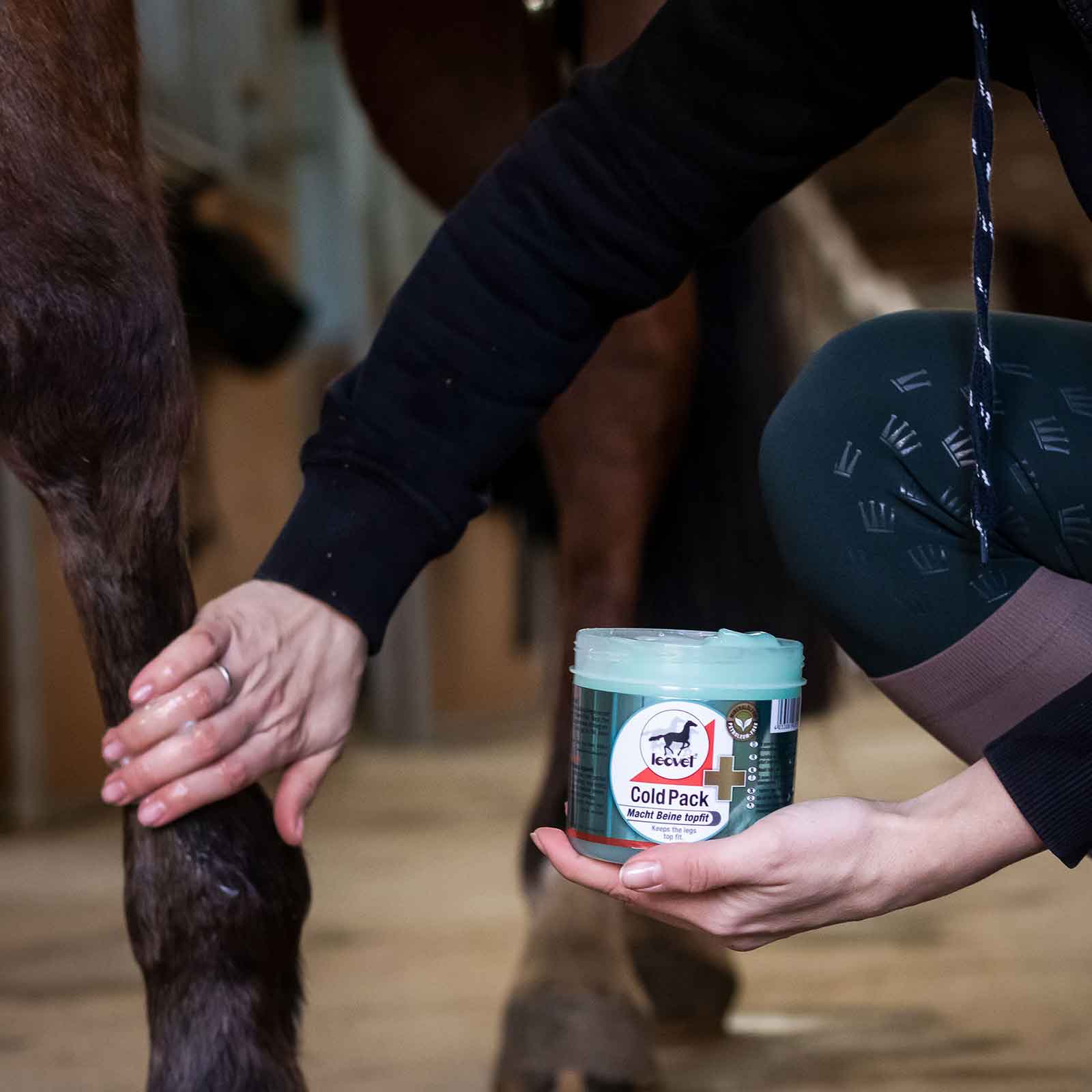 Unguentul pentru cai îmbunătățește mobilitatea și este un deliciu pentru picioarele și mușchii stresați! Ingredientele arnică, rozmarin, mentol și rășină de tămâie relaxează și revitalizează calul, dar și călărețul după antrenament. Datorită efectului bifazic, imediat după aplicarea gelului Leovet Cold Pack Gel se produce un efect de răcire plăcut și de lungă durată, urmat de un efect plăcut de încălzire. Acest lucru favorizează circulația sângelui și picioarele se pot recupera complet.