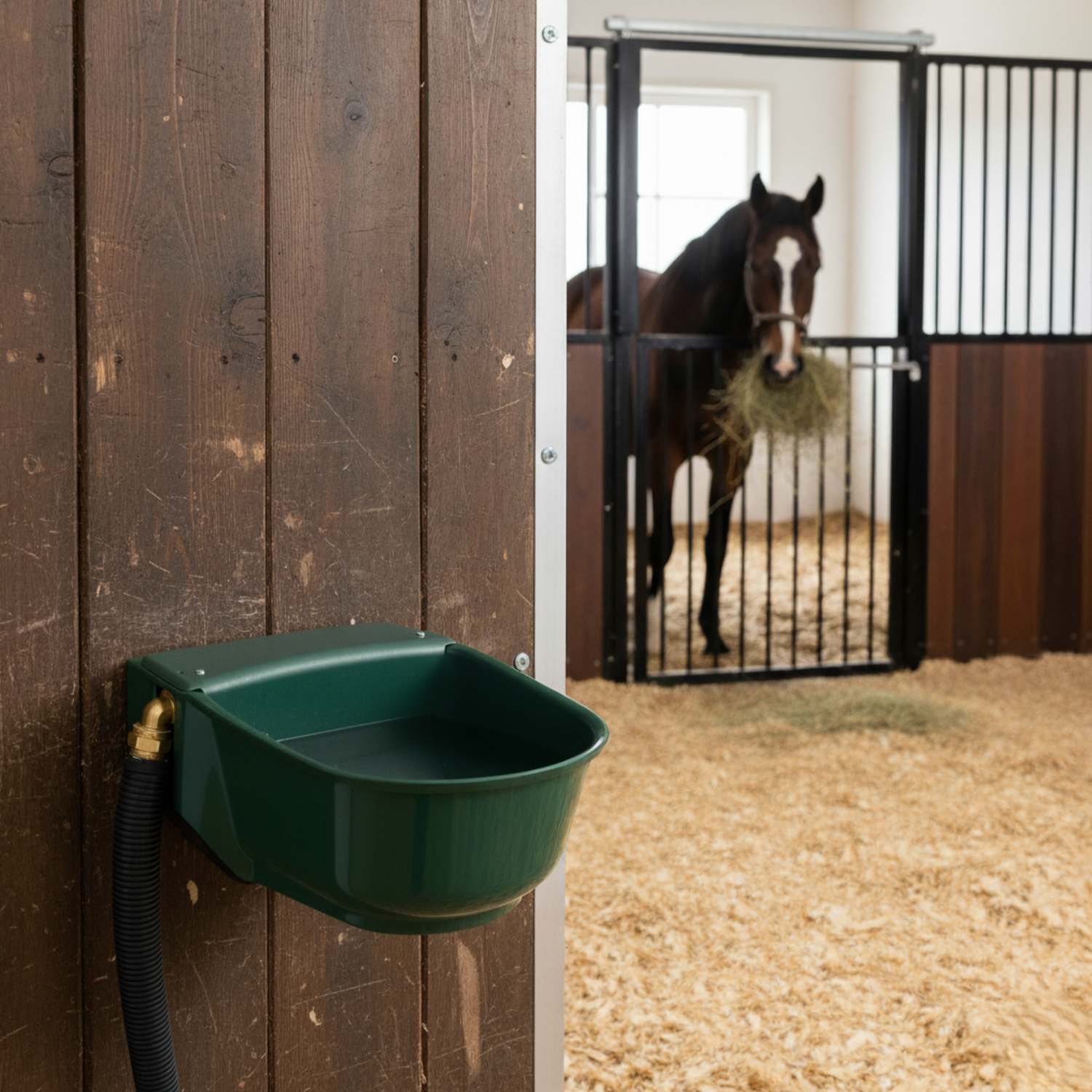 Adăpătorul încălzit cu flotor asigură apă potabilă proaspătă chiar și iarna. Adăpătorul are un cablu de încălzire integrat și ușor de înlocuit și un cablu de încălzire suplimentar pentru o țeavă de aproximativ 2 metri lungime. Un termostat de protecție împotriva înghețului pornește cablul de încălzire la +3 °C și îl oprește din nou la aproximativ +13 °C. Acest lucru previne formarea de îngheț și asigură un debit de apă fiabil chiar și la temperaturi sub zero grade Celsius de până la aproximativ -15 °C. Capacul de pe partea inferioară a adăpătorului și designul închis în zona intrării supapei au un efect izolator și împiedică scurgerea căldurii degajate de cablul de încălzire.