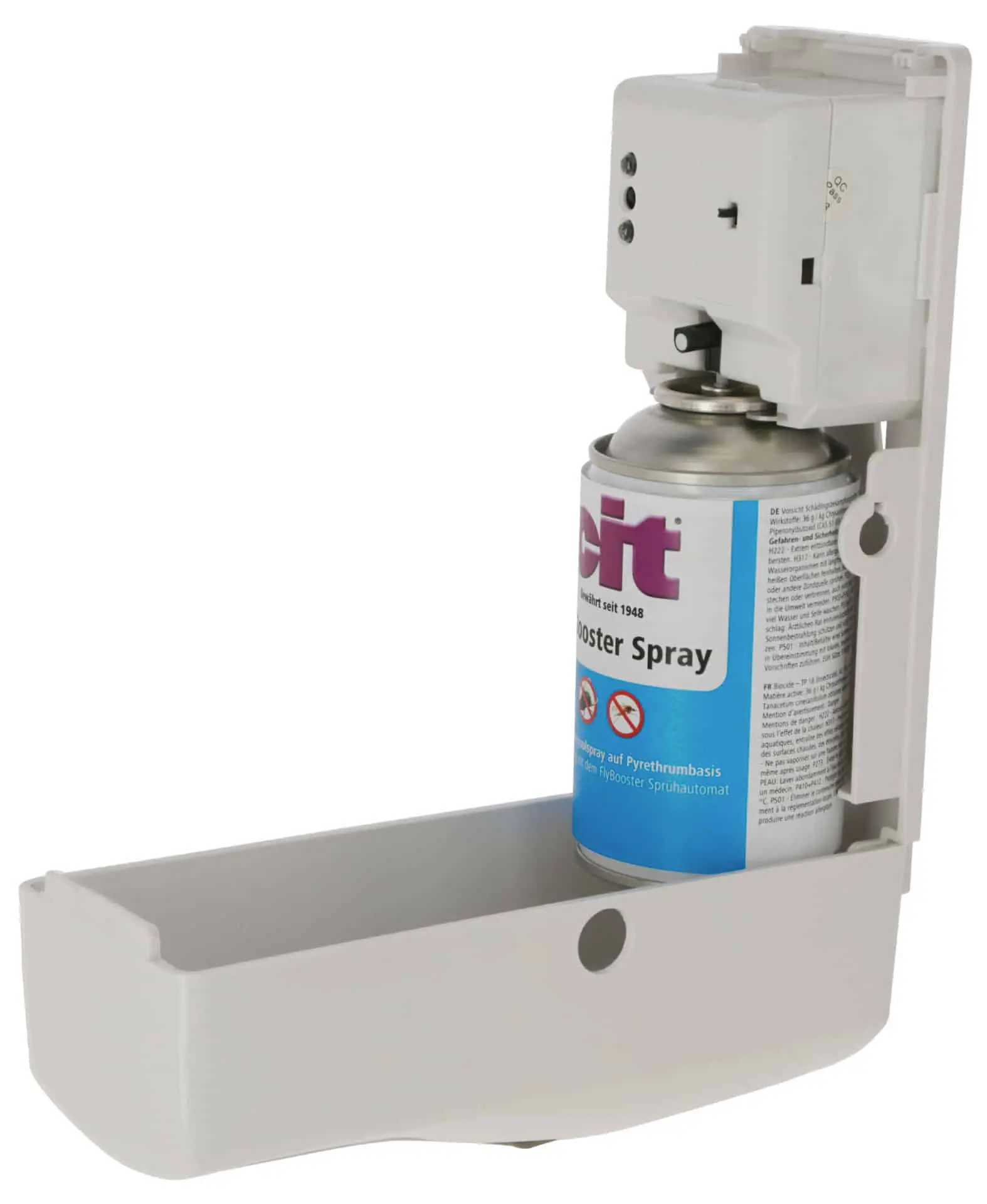 Acest spray este potrivit atât pentru uz interior, cât și pentru exterior, de exemplu pe terasă sau în grajd, unde predomină adesea o densitate ridicată a insectelor. Pe lângă aplicarea manuală, spray -ul poate fi folosit și ca cartuș de reumplere pentru pulverizator automat Flybooster.