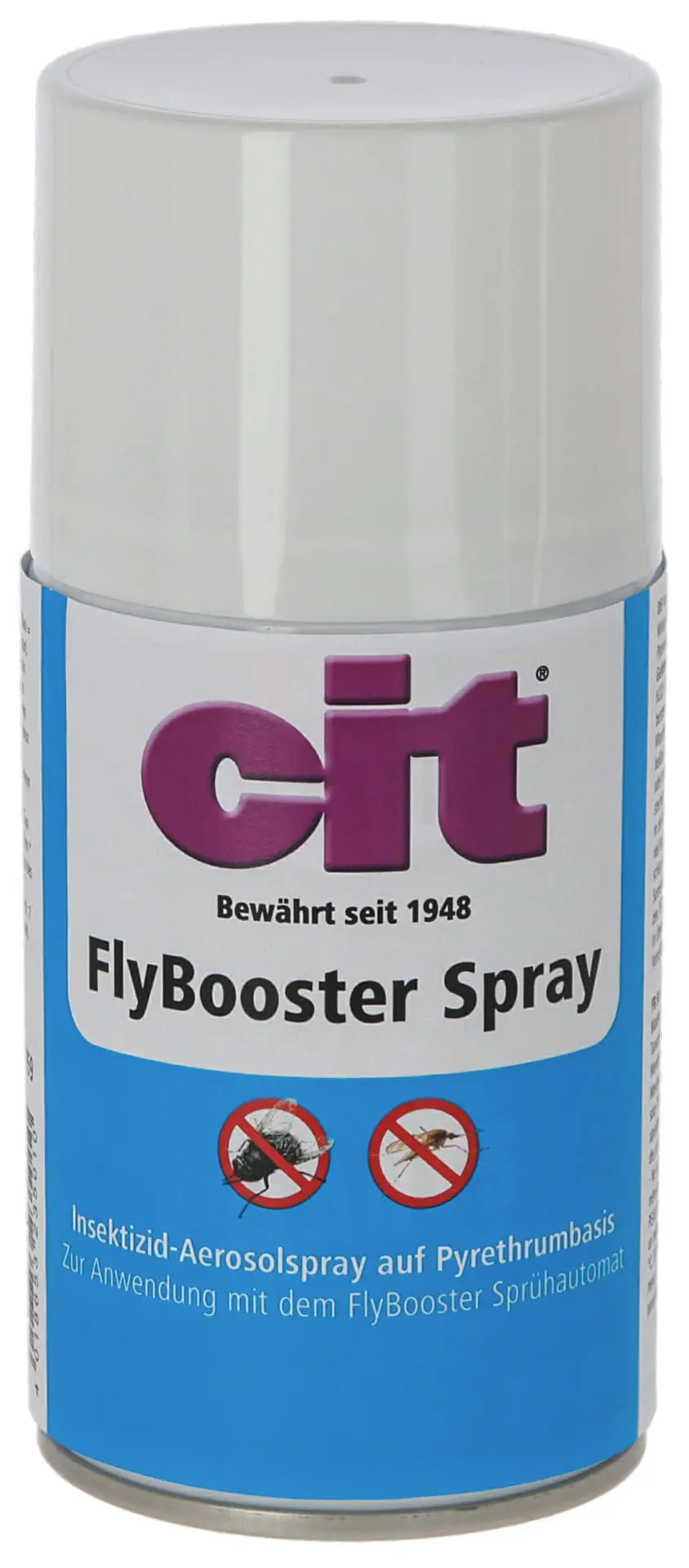 Spray -ul CIT Flybooster oferă o protecție eficientă împotriva muștelor, frânelor, țânțarilor și alți paraziți zburători. Este potrivit atât pentru uz interior, cât și pentru exterior și poate fi, de asemenea, utilizat ca cartuș de reumplere pentru spray -ul flybooster.