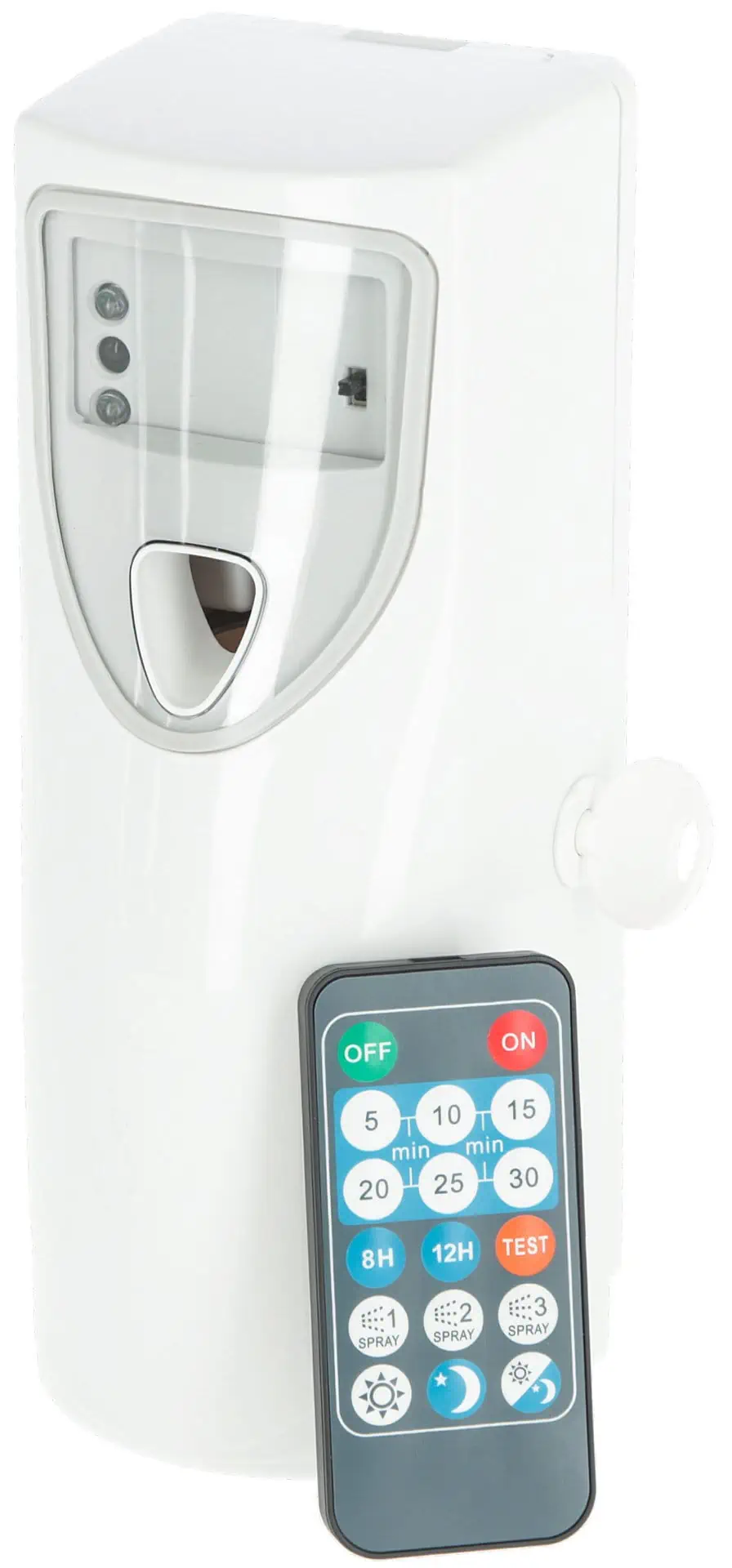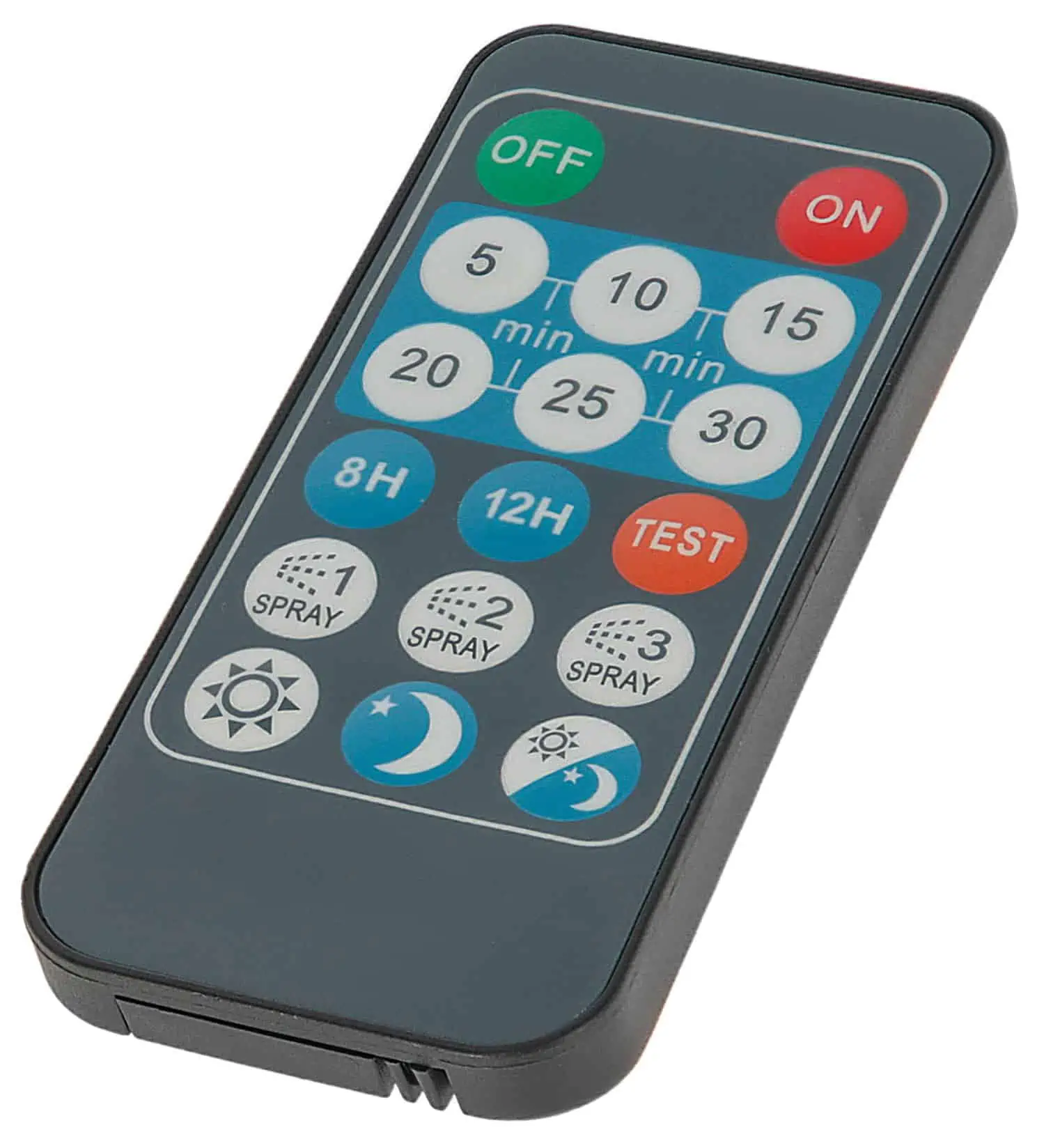 Spray -ul automat are intervale reglabile pentru livrarea continuă a insecticidului. Intervalele de pulverizare dorite pot fi setate cu ușurință cu telecomanda clară și prietenoasă cu utilizatorul. Dispozitivul oferă 6 intervale pentru 8 sau 12 ore de funcționare, fie în timpul zilei, noaptea, fie în jurul ceasului. Pentru un efect optim, dispozitivul de pulverizare automată trebuie instalat la 2 metri deasupra podelei.