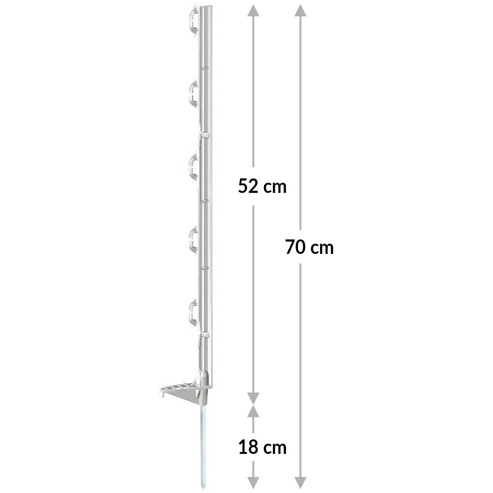 Cu o lungime totală de 70 cm și o lungime deasupra solului de 52 cm, stâlpul de gard pentru pășuni este foarte mobil. Mobilitatea facilitează îndepărtarea și repoziționarea împrejmuirii atunci când este necesar.