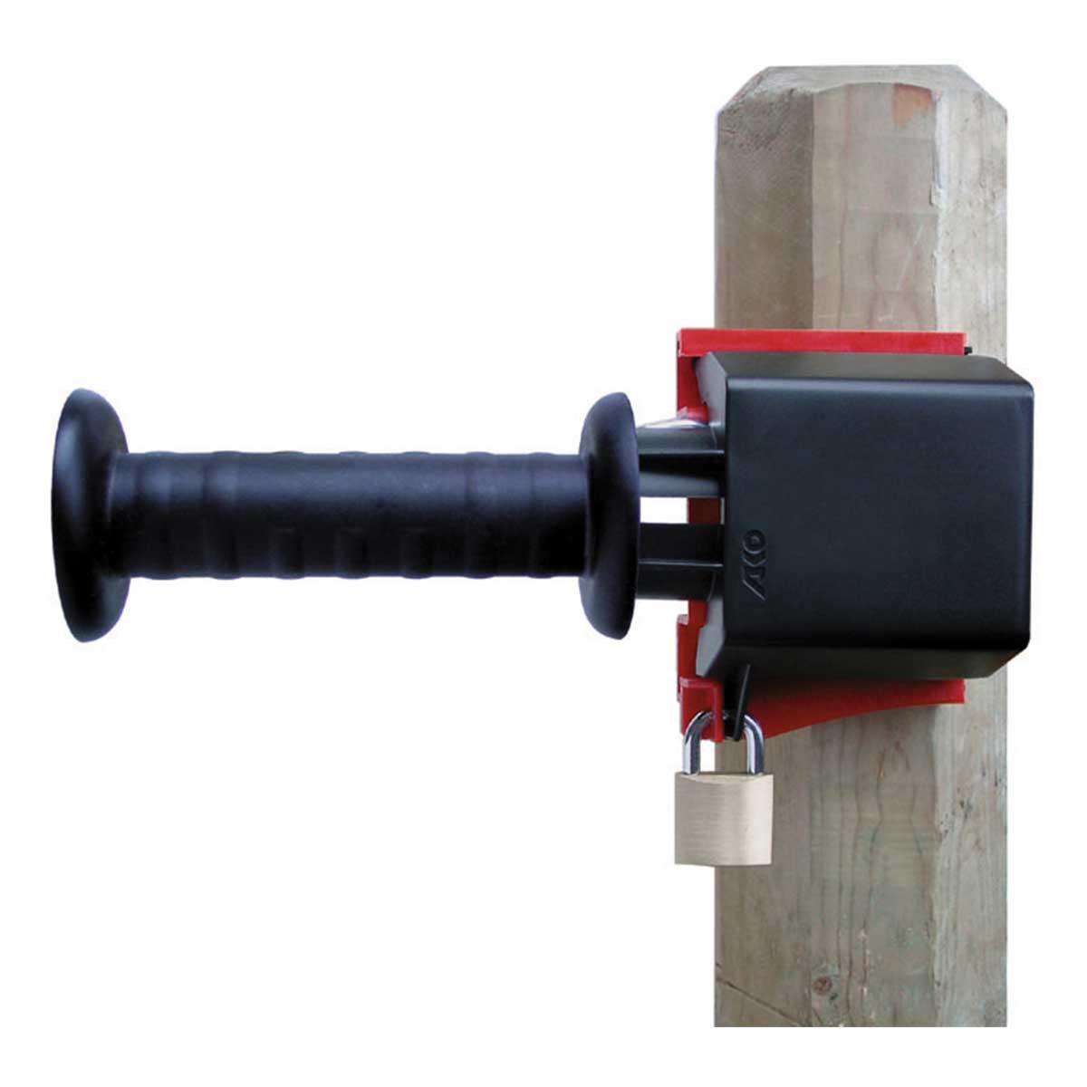 Sistemul de blocare a porții: agățați mânerul porții în placa de conectare - glisați capacul de securitate - închideți lacătul - gata! Astfel, mânerul porții este bine ancorat în carcasa de securitate blocată și numai persoanele autorizate au acces la pășune.
