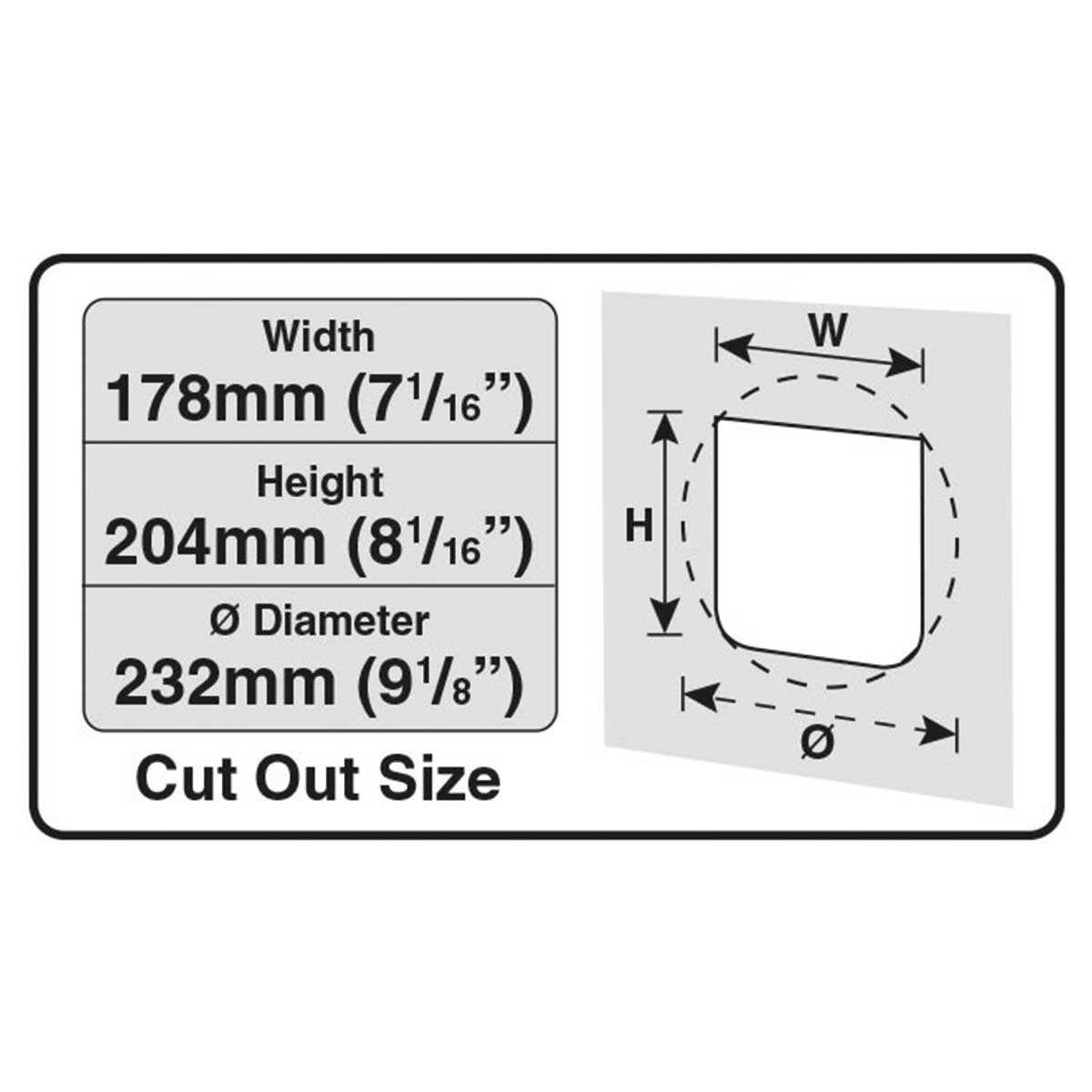 Ausschnittgröße (B x H): 178 x 204 mm (DM: 232 mm)