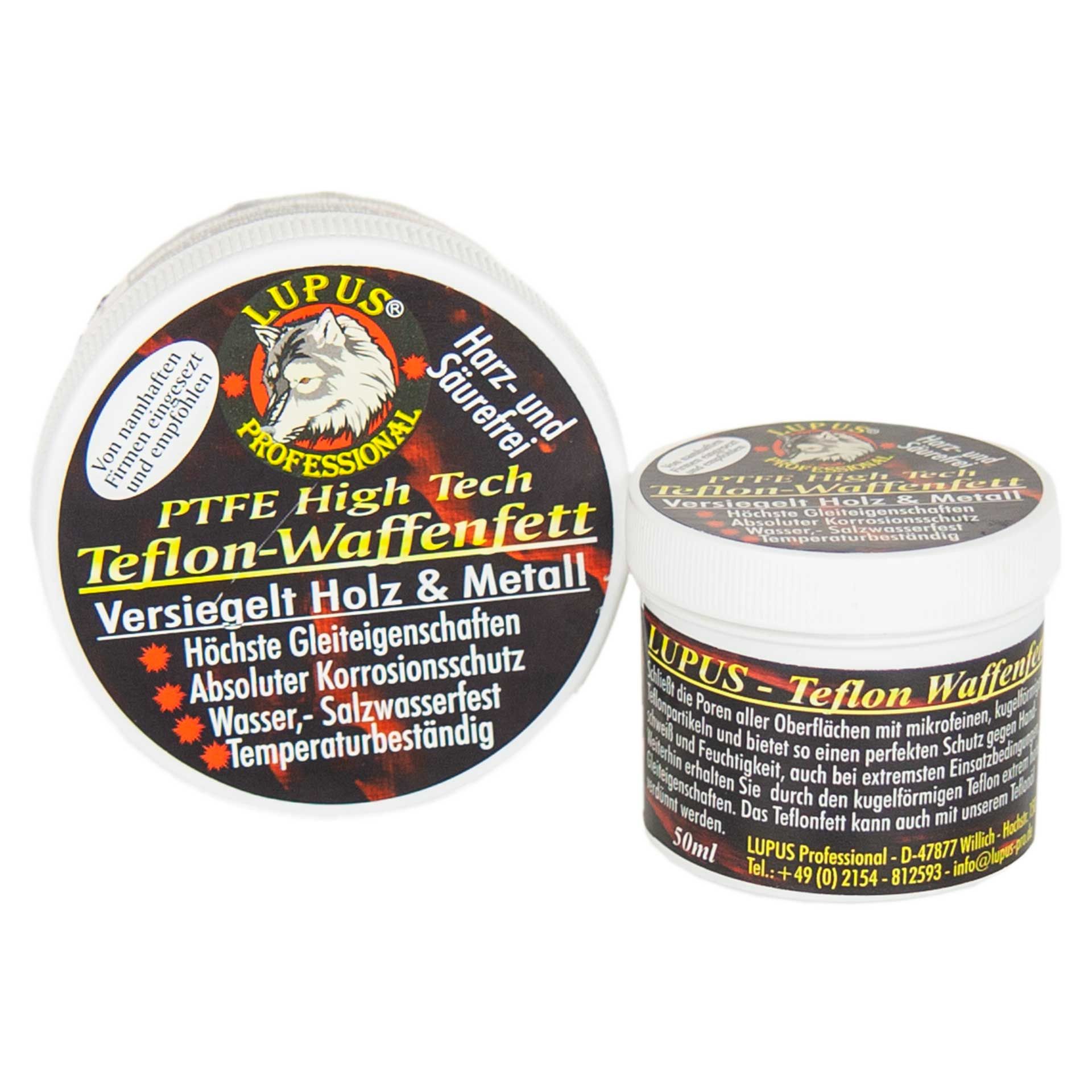 Recomandat și utilizat de companii de renume, microfina de grăsime a armelor de teflon conține particule de teflon de microfină, care garantează o lubrifiere ridicată și o funcție de protecție chiar și în cele mai grele condiții. După tratamentul cu grăsime de arme de teflon, arborele și toate suprafețele rămân uscate și absolut impermeabile.