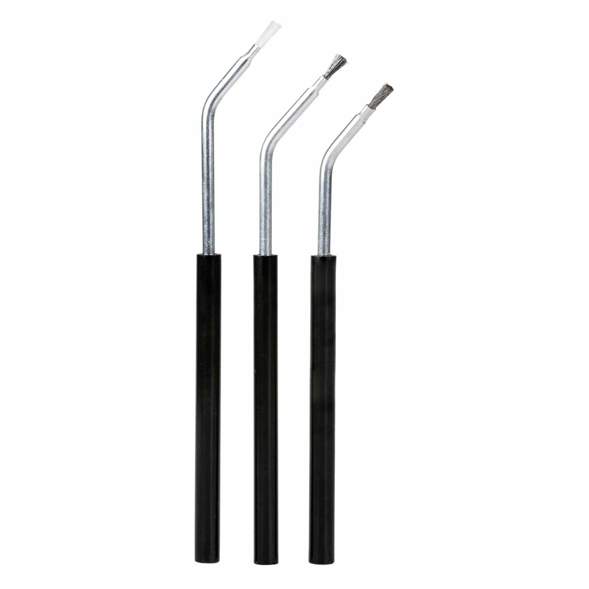 - Pentru ce materiale sunt aceste perii adecvate? Setul conține perii pentru diferite suprafețe: nylon pentru suprafețe sensibile, oțel pentru depozite încăpățânate și alamă pentru suprafețe metalice.