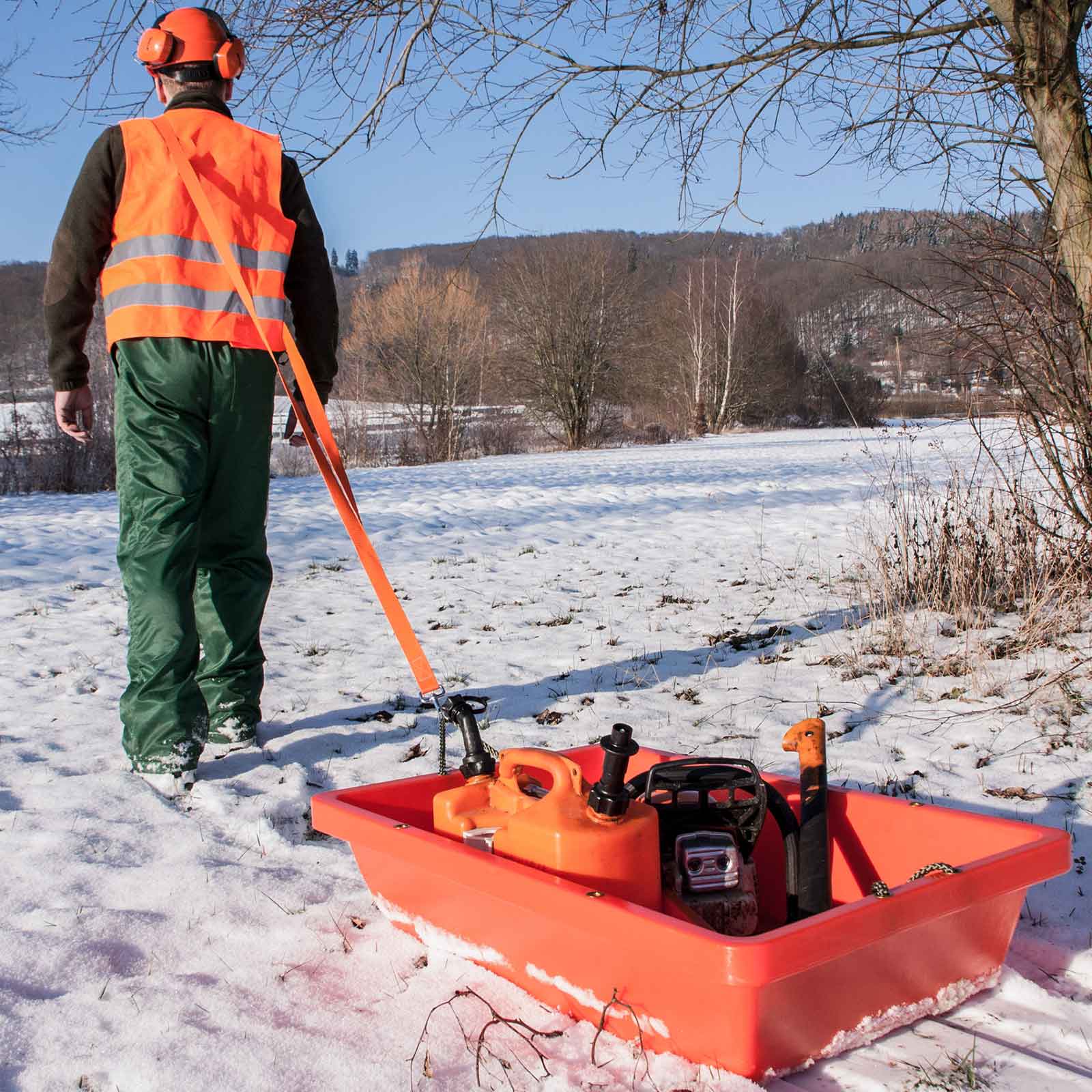 Cu centura pentru pădure și cadă sălbatică, cada poate fi trasă cu ușurință pe orice suprafață datorită erorii în formă de sanie și a alergătorilor integrați. Acest lucru face ca să fie un ajutor indispensabil atunci când lucrați în aer liber, fie că mutați echipament în pădure sau când transportați joc după vânătoare.