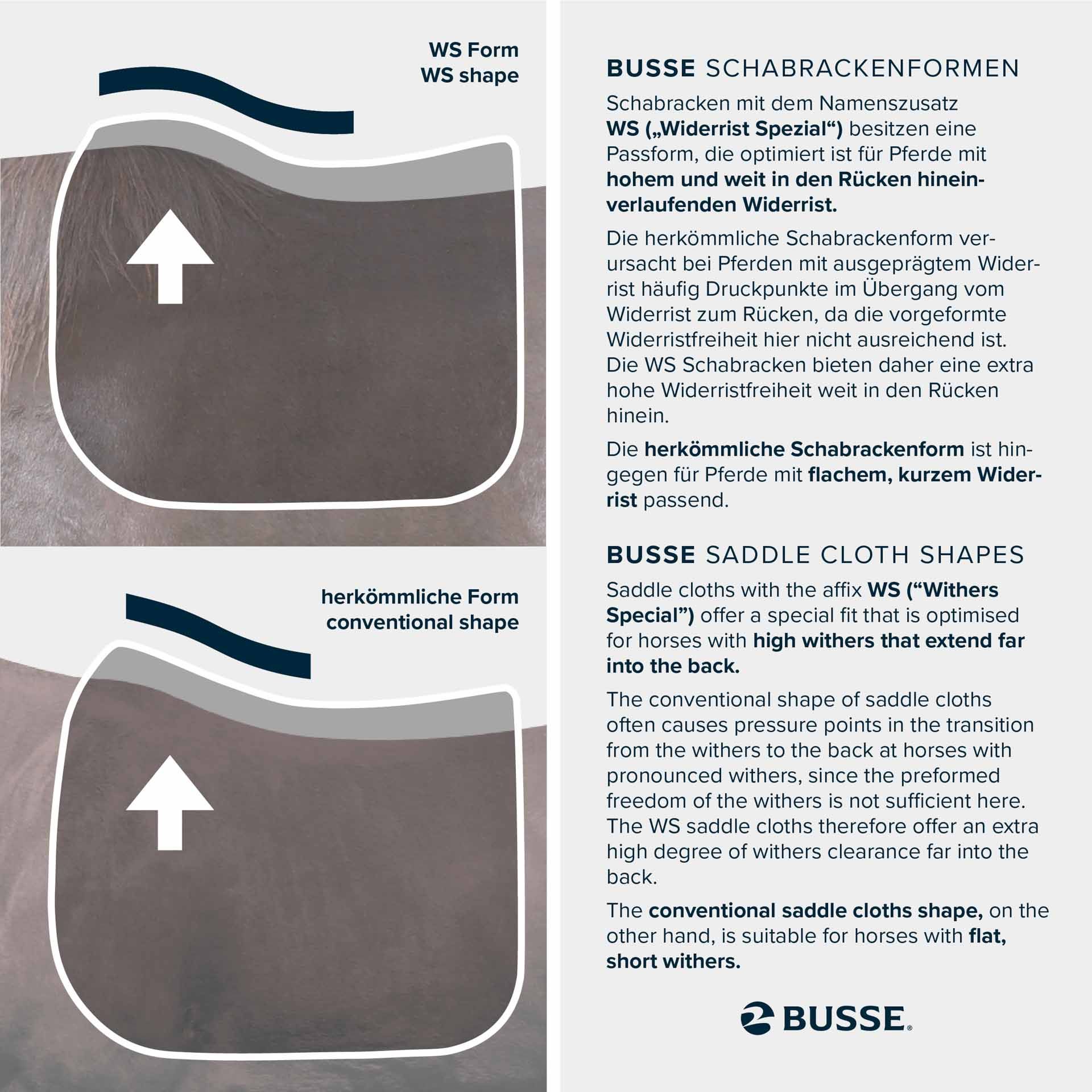 Corespondentul Avary WS al lui Busse este proiectat cu o formă potrivită pentru spatele multor cai, deci ar trebui să se adapteze la o varietate de rase. Cu toate acestea, este întotdeauna recomandat să luați în considerare nevoile specifice ale calului dvs.