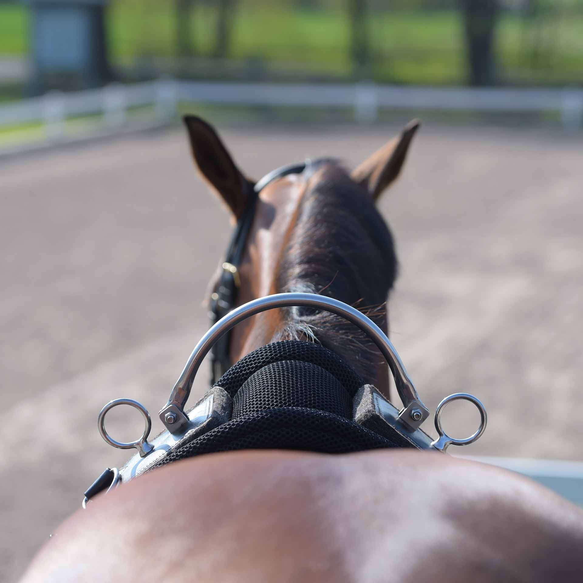 - poate fi folosită cu suportul de șa și toate șantioanele convenționale de lungeing, pot fi, de asemenea, legate peste o șa