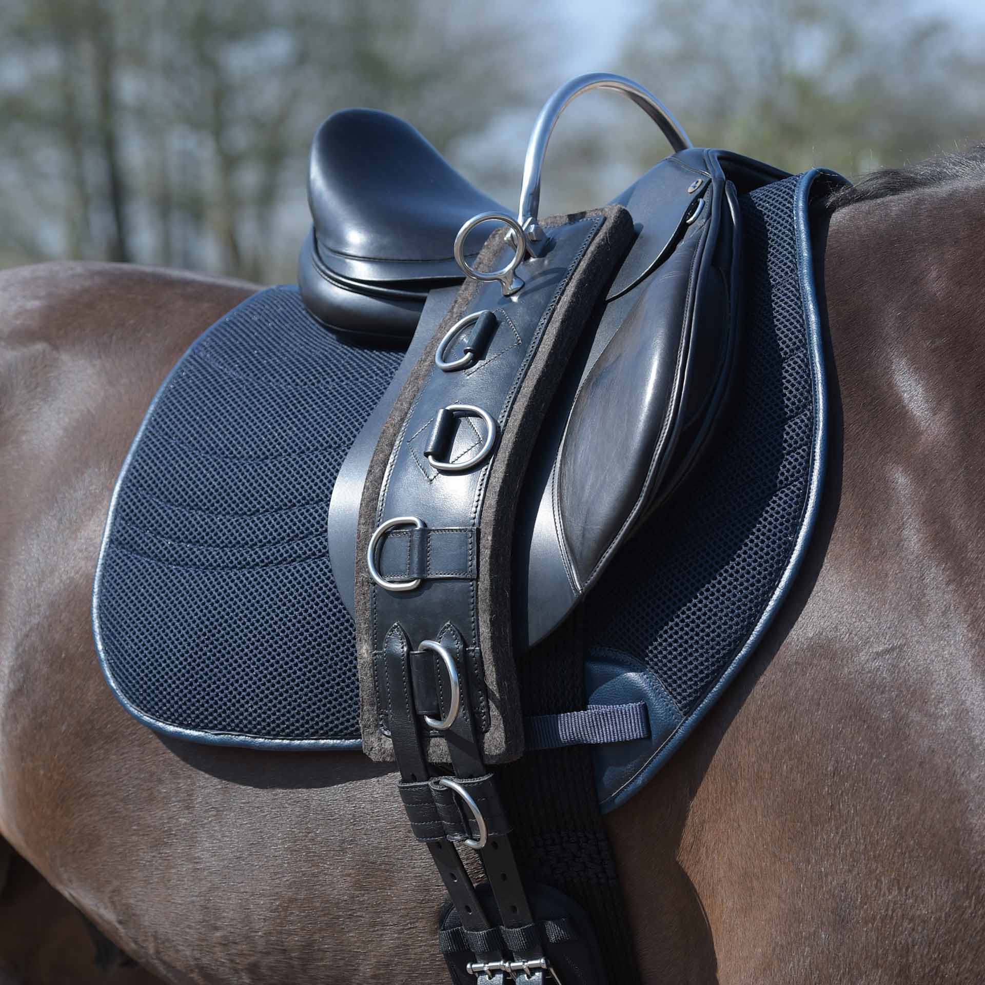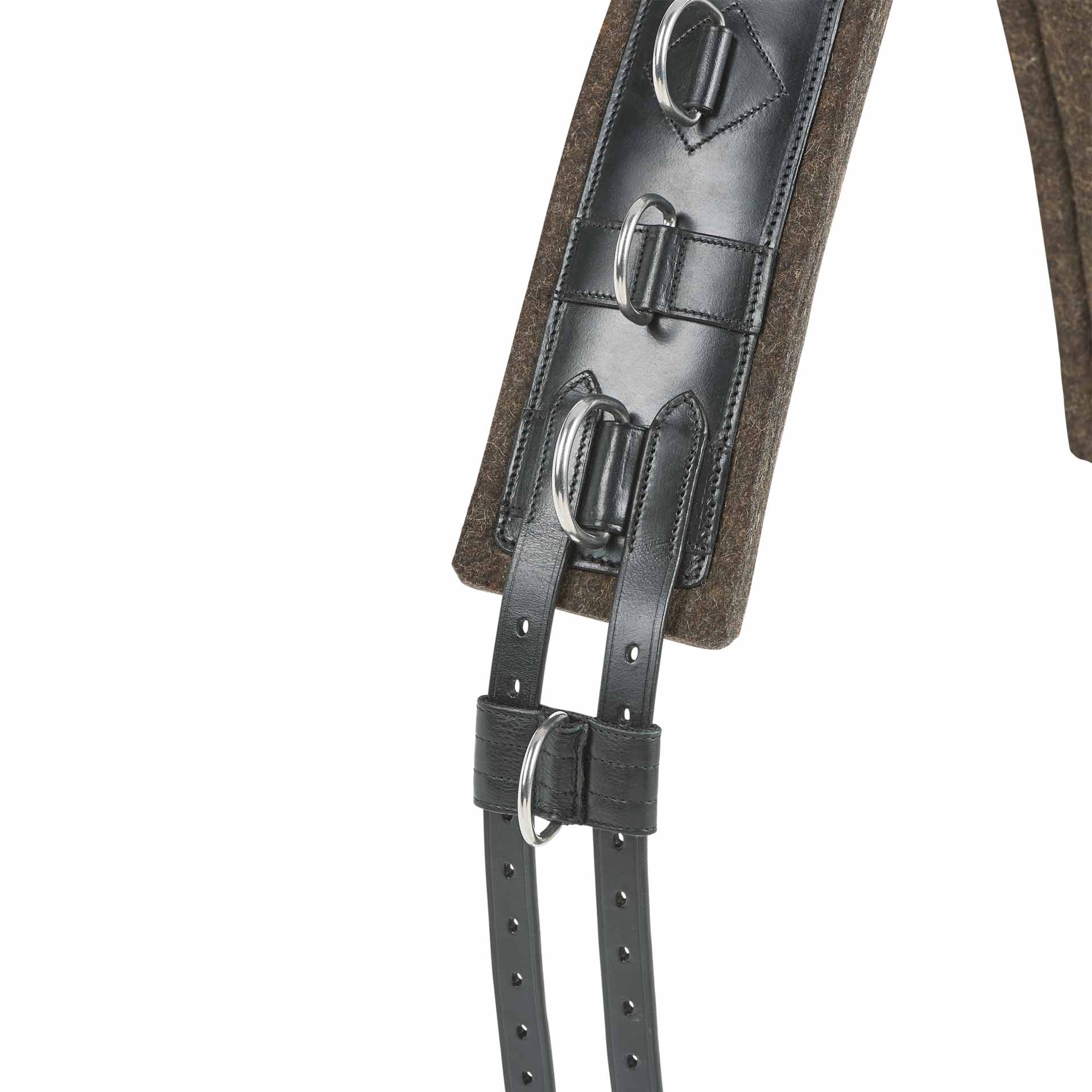 - Creele duble pe ambele părți pentru utilizarea oricărei circumferințe scurte, în funcție de circumferința calului și de preferințele materialelor - prin urmare, nicio centură de talie inclusă în livrare
