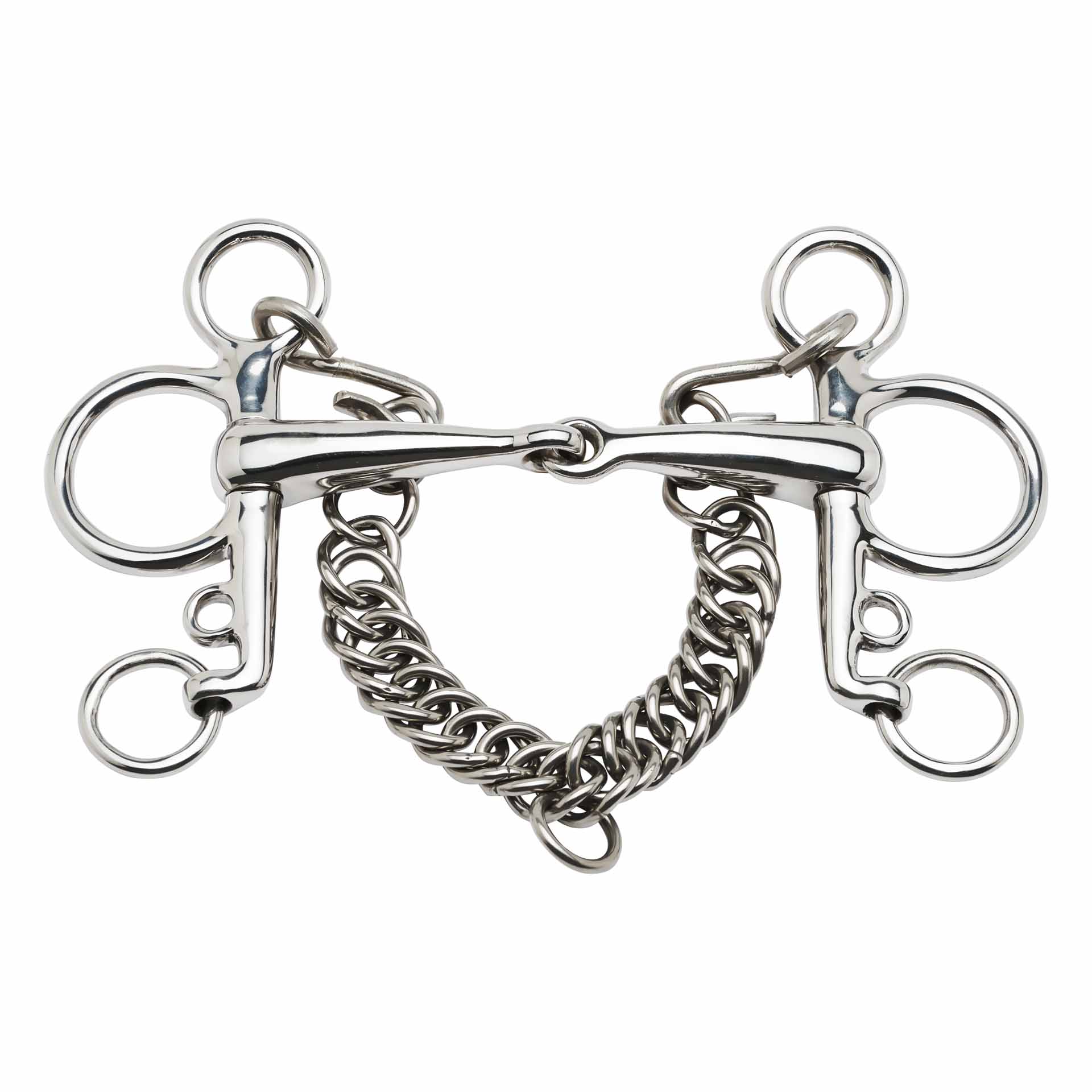 It is important that the bit fits correctly into the bit straps of the bridle or curb is buckled. When buckled correctly using the bit straps, approx. 2-3 small wrinkles will form at the corners of the mouth.