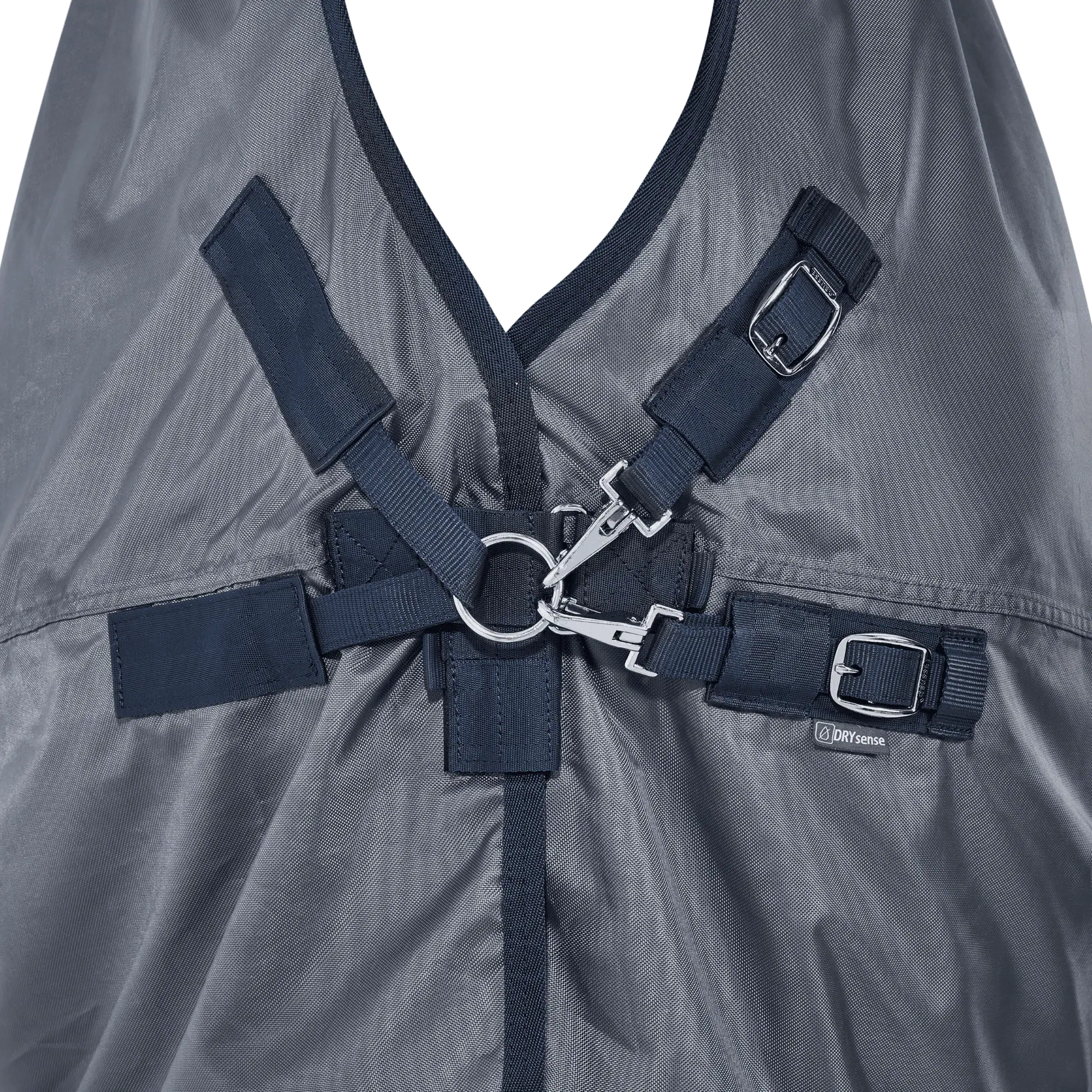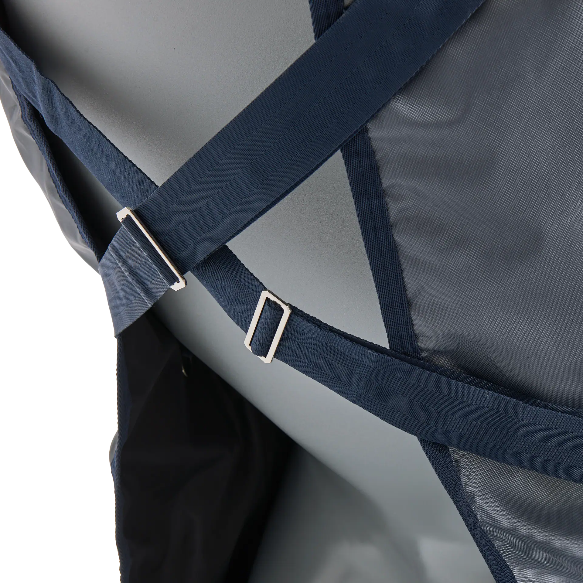 Designul de ploaie 200 oferă un confort optim pentru calul tău. Forma cu gât ridicat, cu o zonă a gâtului, care se extinde cu mult dincolo de Garrese oferă o potrivire mai mare. Închiderea pieptului V-Quick-Snap cu carabinere integrate duble și carabinere interschimbabile face ca pătura ușor de purtat și îndepărtat. Crucii încrucișați, curele încrucișate, cordonul din spate adânc și acoperirea largă a cozii oferă un confort și protecție suplimentară. Cu ploaia 200, calul tău va avea întotdeauna protecția de care are nevoie, indiferent de condițiile meteorologice.