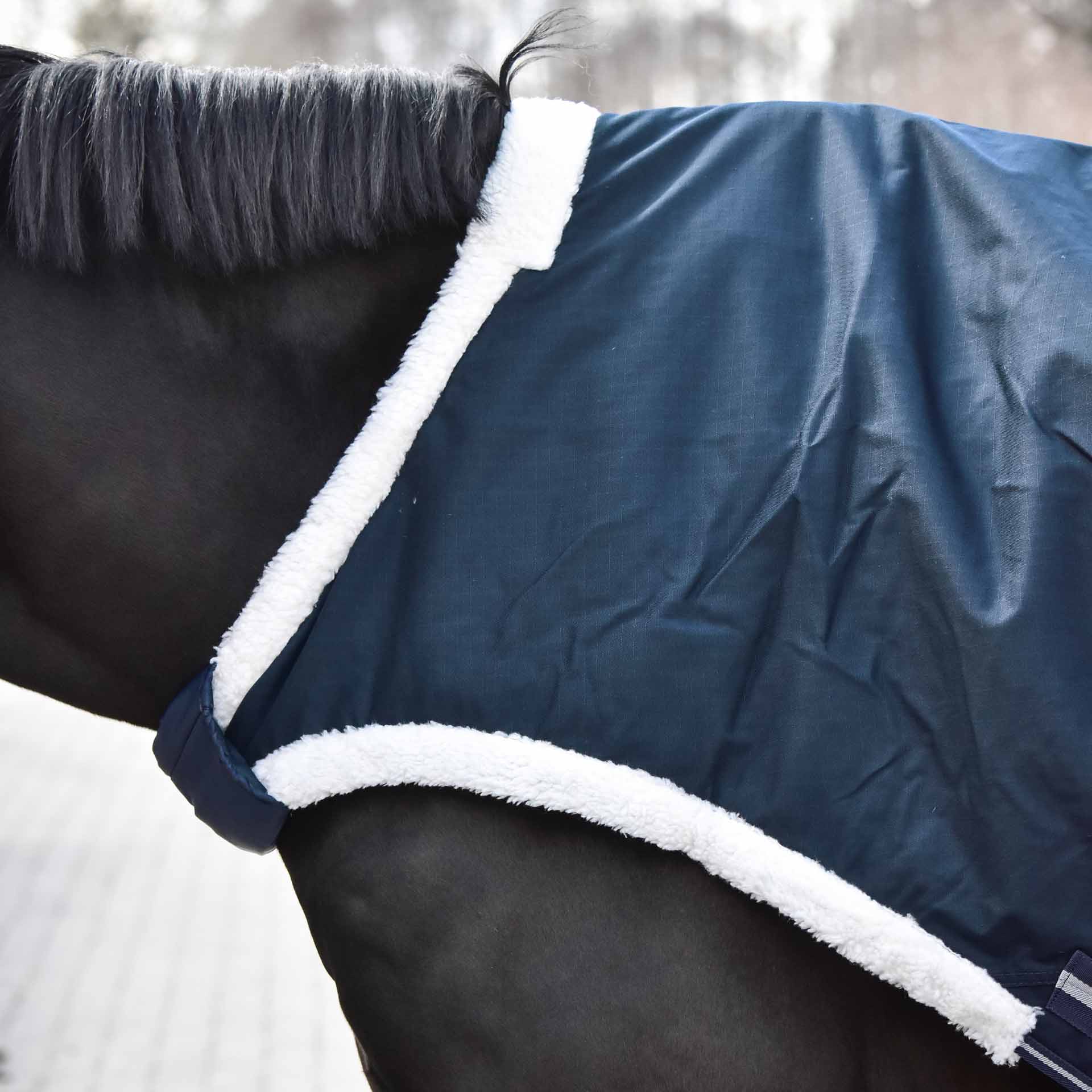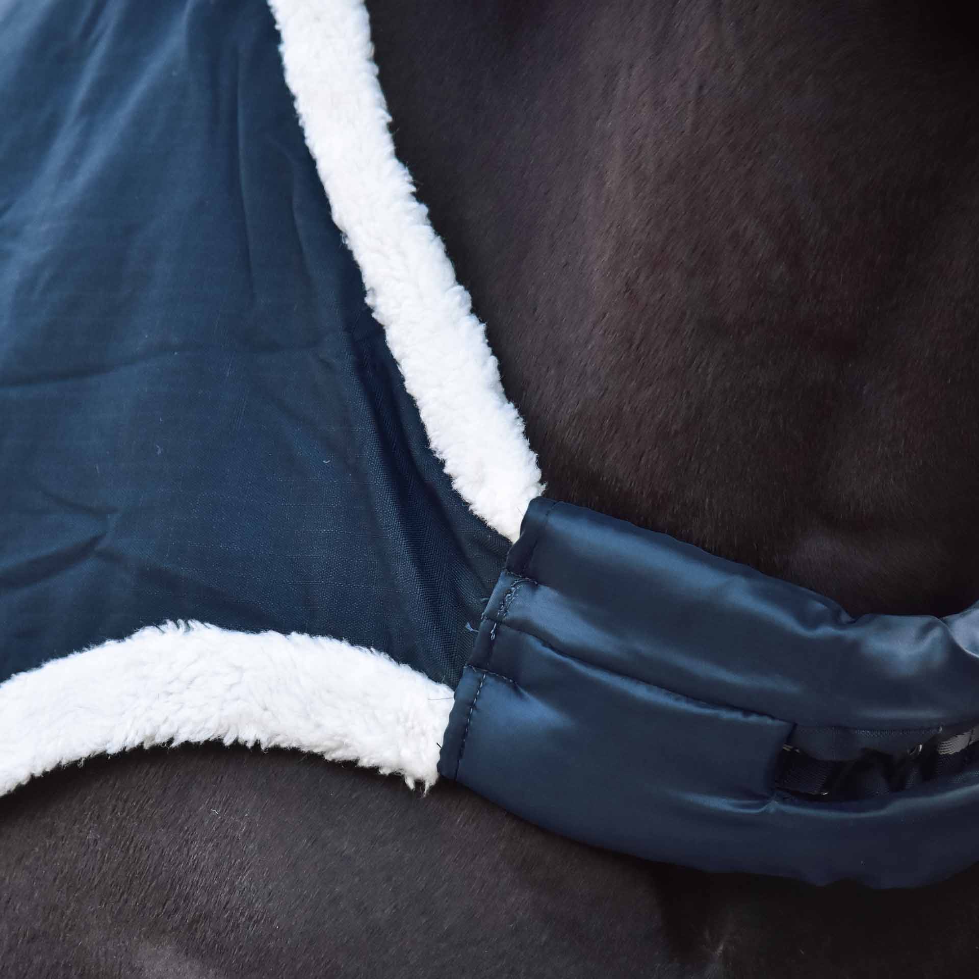 For the final adjustment of a horse blanket, the adjustment options on the product should be used, as incorrect application can lead to damage. Even with optimal adjustment, regular checks of the fit are essential. Check that the blanket fits correctly, the Velcro fasteners are clean (to avoid chafing) and the blanket is intact.