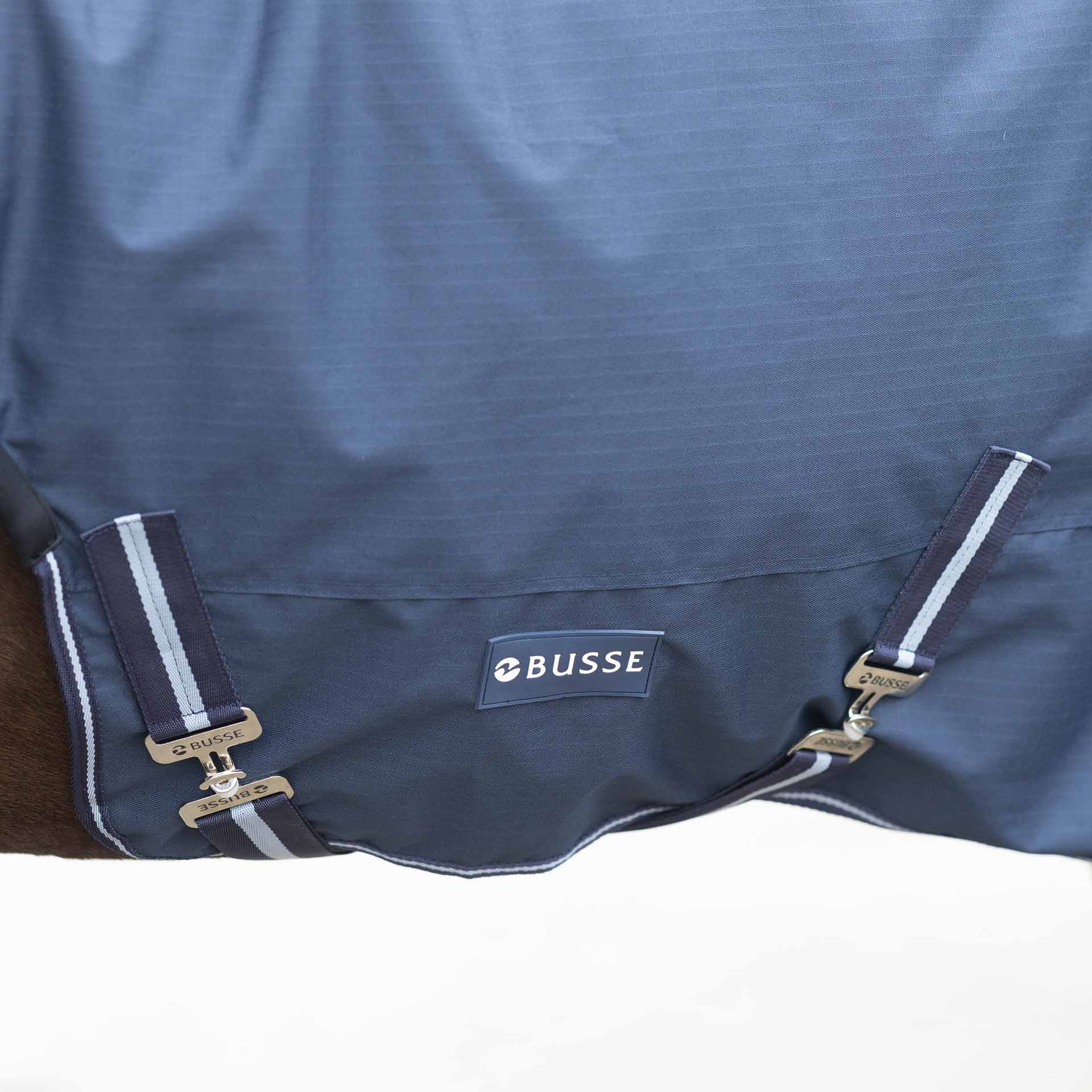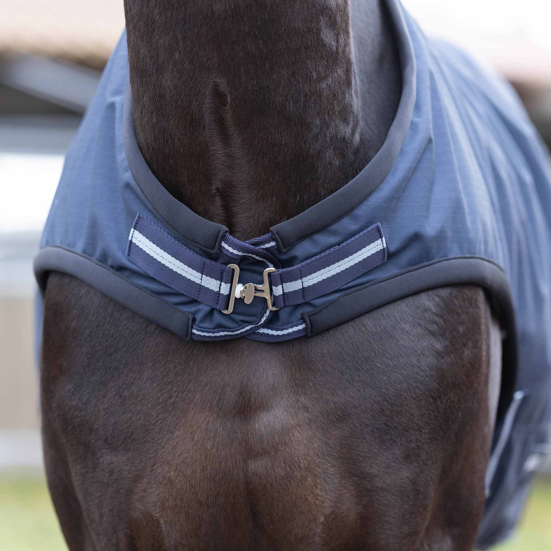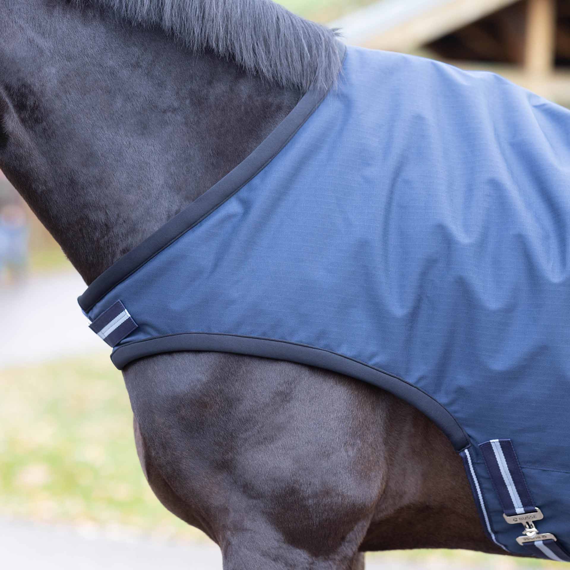 For the final adjustment of a horse blanket, the adjustment options on the product should be used, as incorrect application can lead to damage. Even with optimal adjustment, regular checks of the fit are essential. Check that the blanket fits correctly, the Velcro fasteners are clean (to avoid chafing) and the blanket is intact.