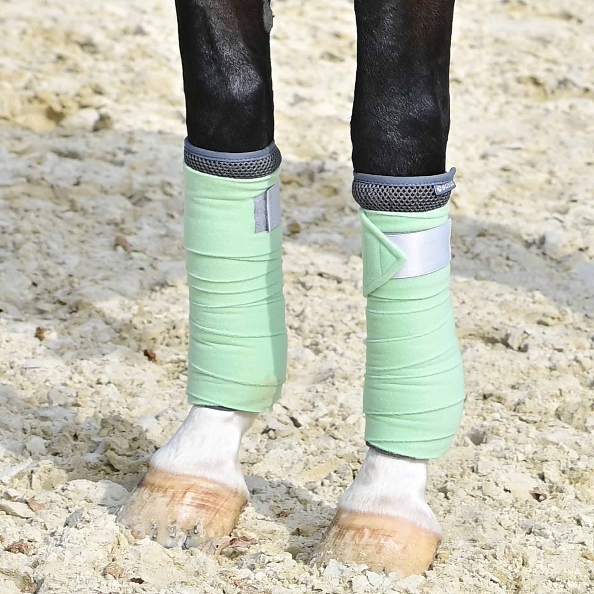 We recommend using bandages in combination with the 3D AIR® EFFECT bandage underlays to reduce heat build-up. The bandage should only be put on shortly before the start of training and removed from the horse's leg immediately after training has ended. Check the temperature of the horse's legs and cool them if necessary. When putting on the bandages, be careful not to bandage too tightly or too loosely. If applied too tightly, blood congestion can occur, while a bandage that is too loose can unravel and pose a risk of injury. Check the fit of the bandage regularly.