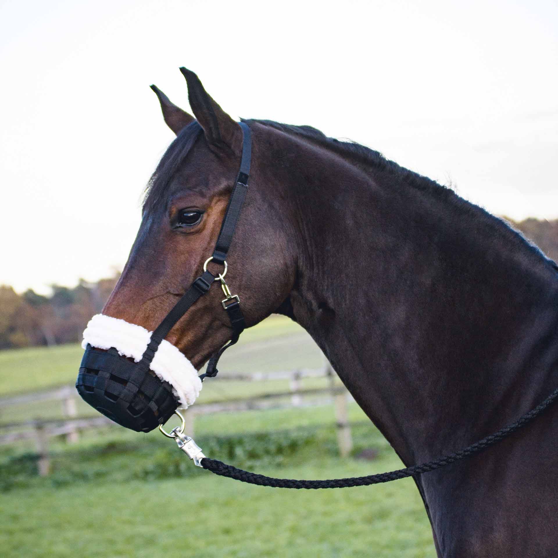 datorită deschiderii sale captusite cu blană sintetică moale, mușchiul confortabil previne iritația și presiunea asupra nărului și mandibola, garantând un confort maxim pentru calul tău. Fabricat din panglică de pânză robustă și bine inventată, include o cavitate reglabilă în cinci poziții pentru o adaptabilitate perfectă.