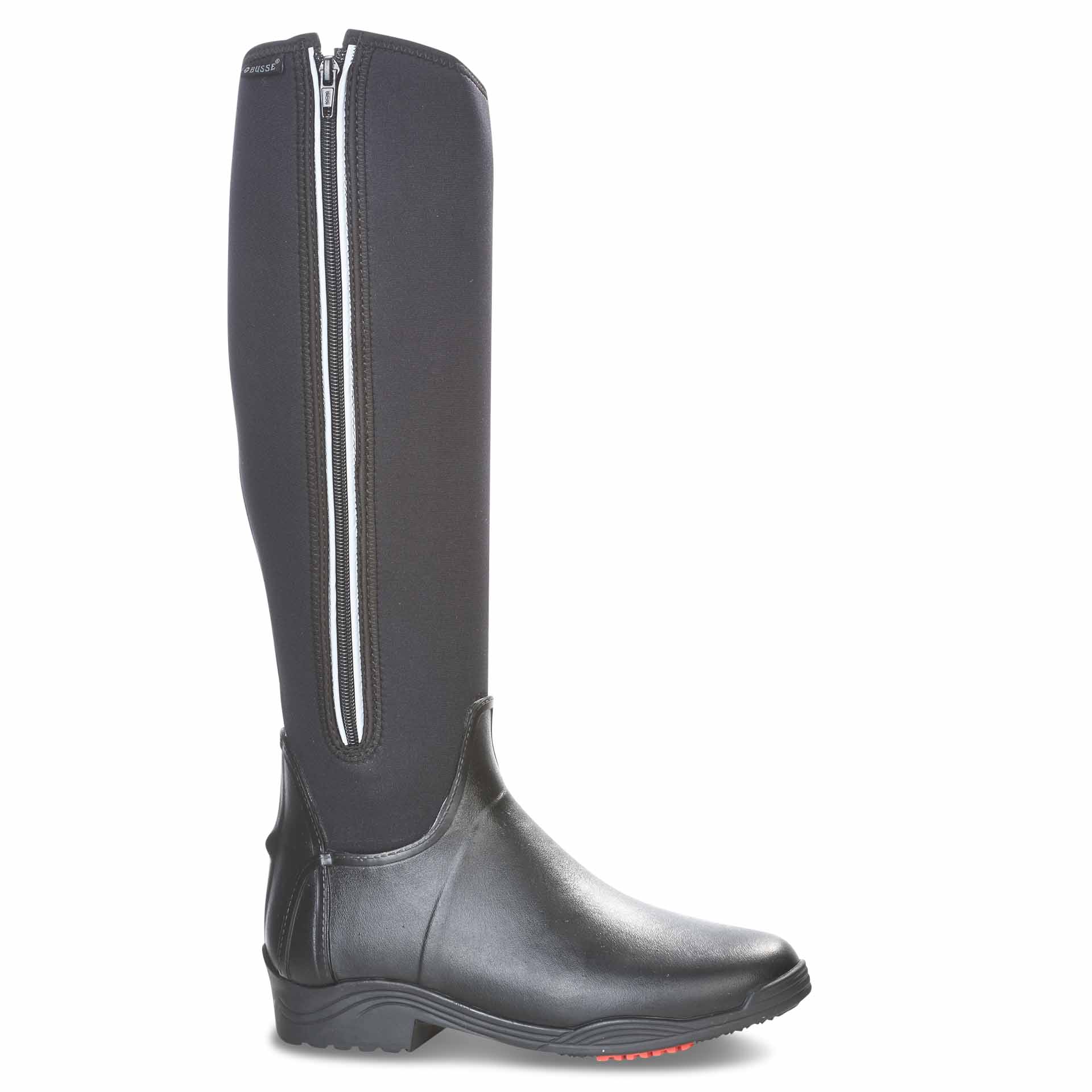 Pentru a garanta o experiență de călărie impecabilă, cizmele de călărie din Calgary de la Busse sunt confecționate din neopren impermeabil de 5 mm, cu o formă anatomică care se adaptează perfect la piciorul tău. Potrivirea optimă în jurul vițelului este garantată de flexibilitatea neoprenului, permițându -vă să purtați îmbrăcămintea pe care o preferați sub cizme fără a compromite confortul.