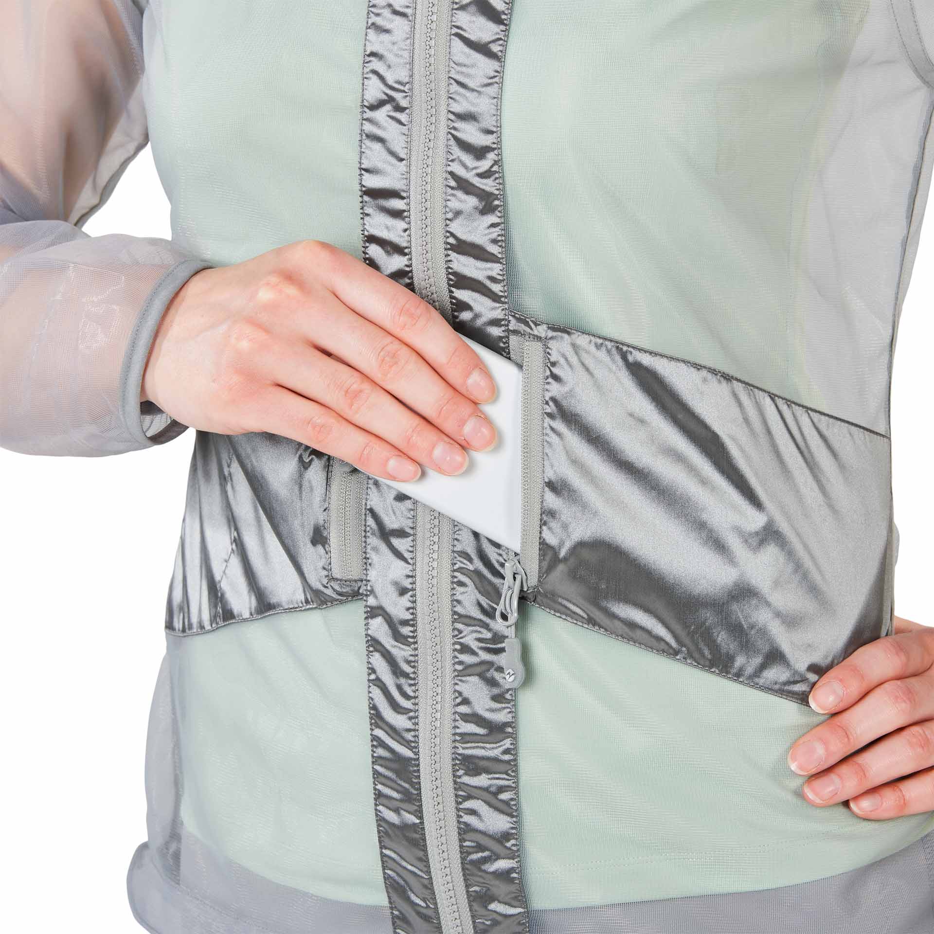 Mai mult, jacheta de zbor are un design sportiv și feminin, cu inserții lucide despre viață, fermoar principal și capotă. Materialul rețelei este plăcut moale și ușor pe piele.