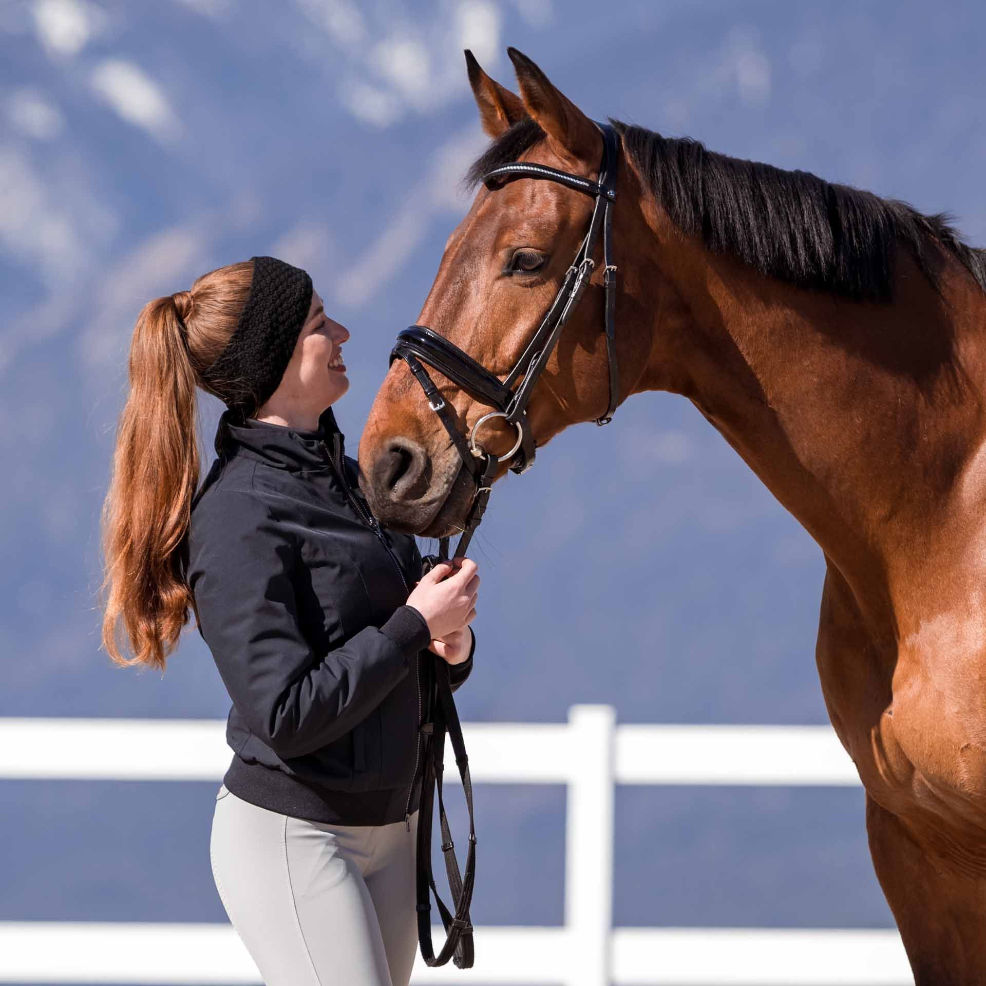 Jacheta oferă numeroase funcții specifice pentru cavalerie, inclusiv un fermoar cu două căi, cu protecție pentru șa, o rețea de spațiu uscat 3D Air® în partea superioară a spatelui și sub brațe pentru un climat intern mereu confortabil, trei buzunare cu fermoar spațioase, inclusiv un compartiment intern cu pasaj pentru cabluri de ascultare și mâneci preformate pentru un confort optim într -o poziție îndoită.