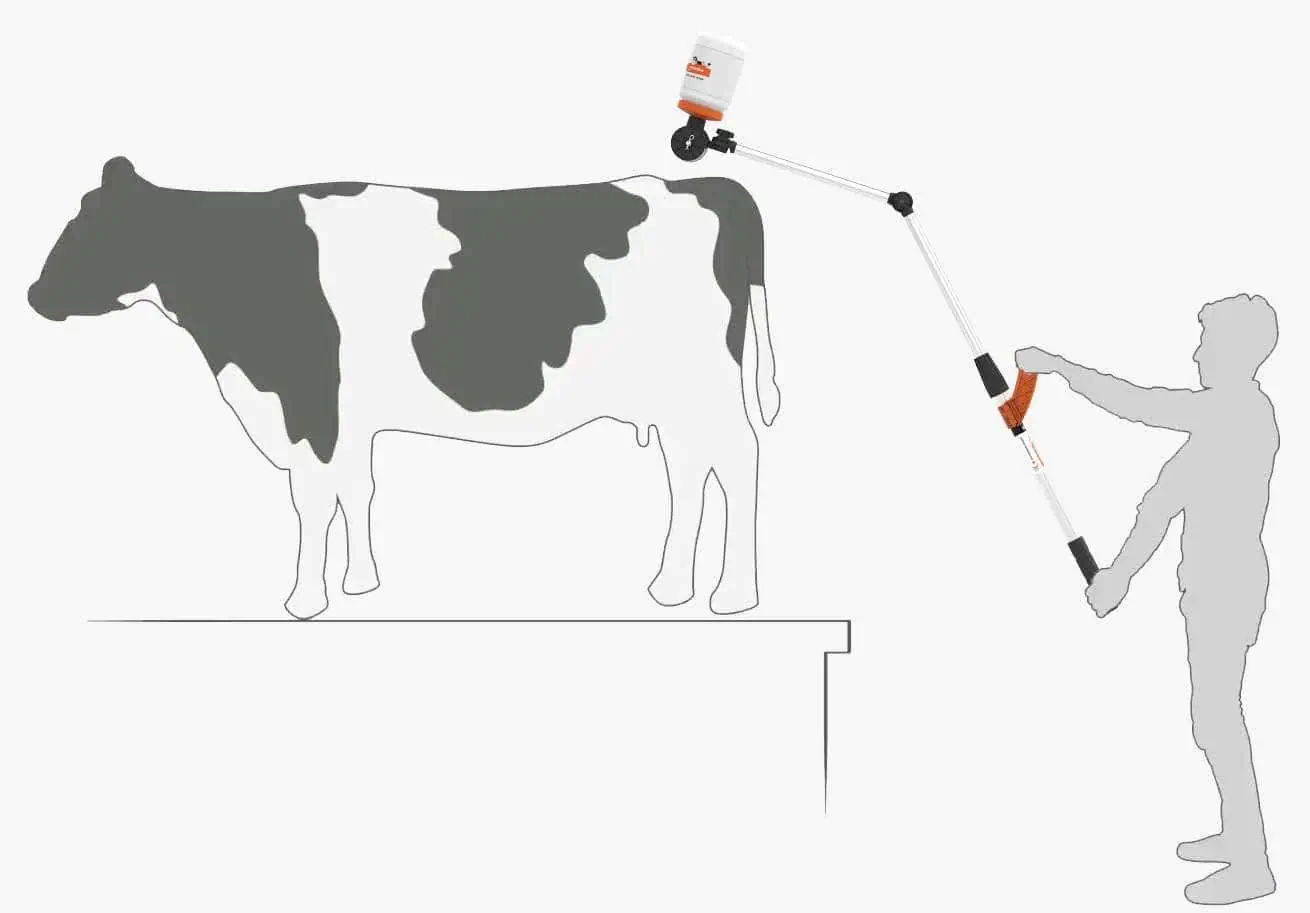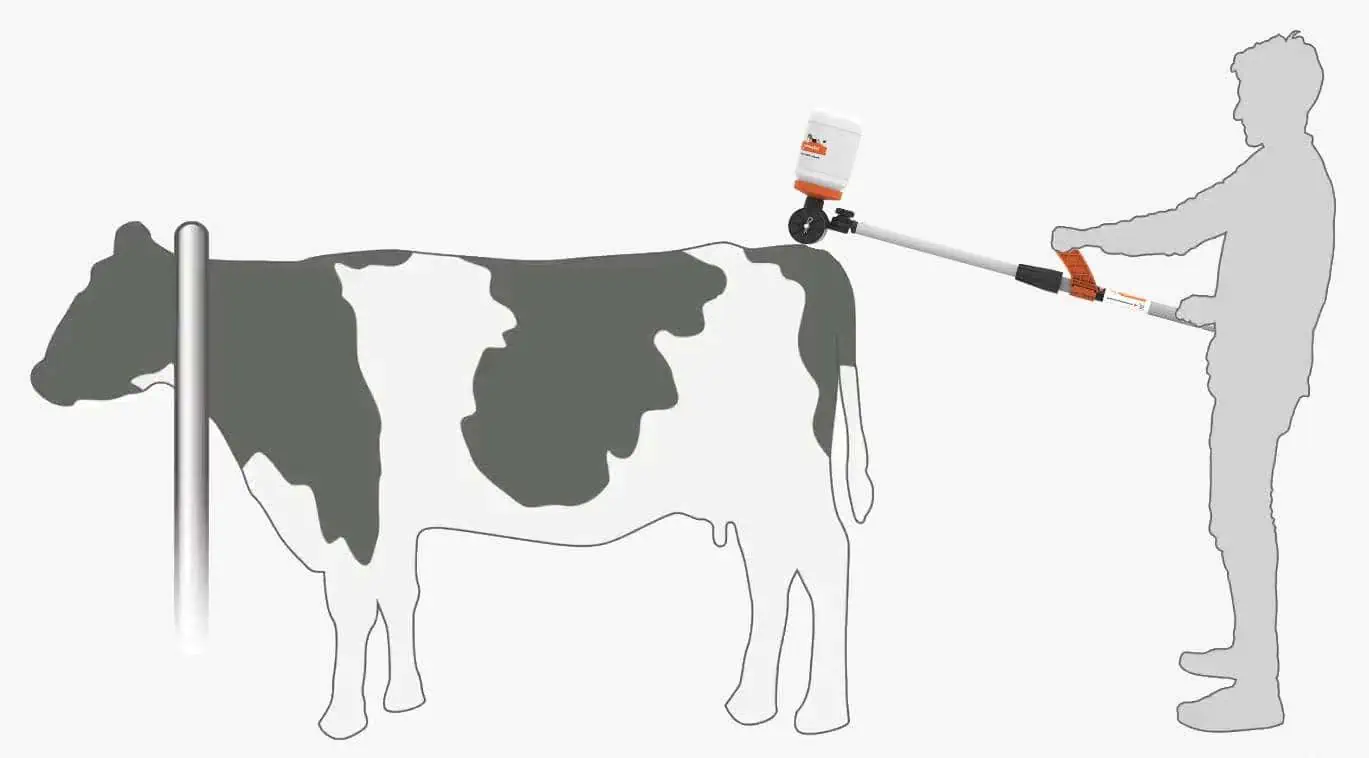 - Aplicator pentru aplicarea cu economie de timp și în siguranță a colorantului de detectare a căldurii pe vaci